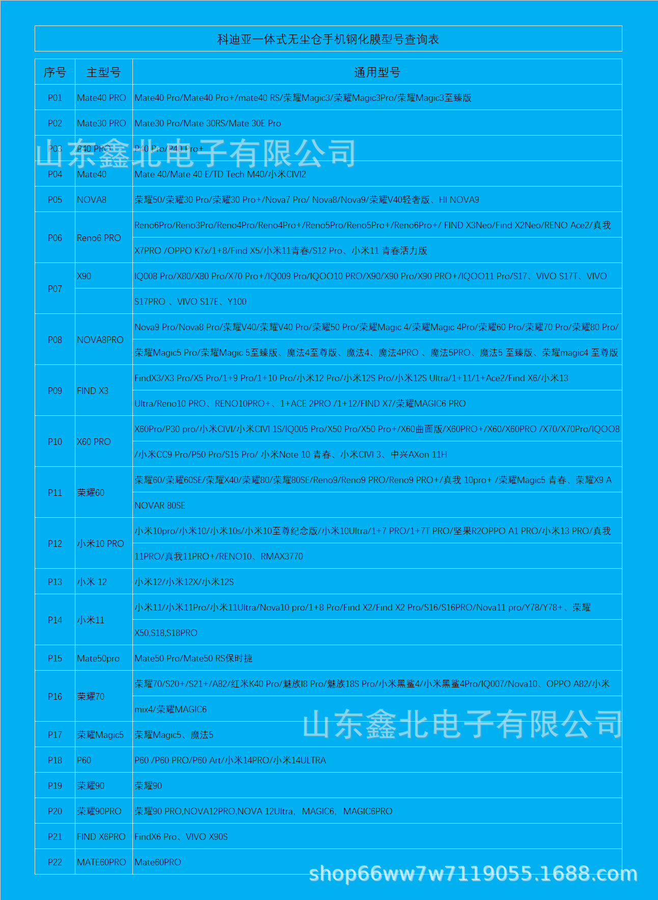 扫码识别手机型号通用表↓↓↓