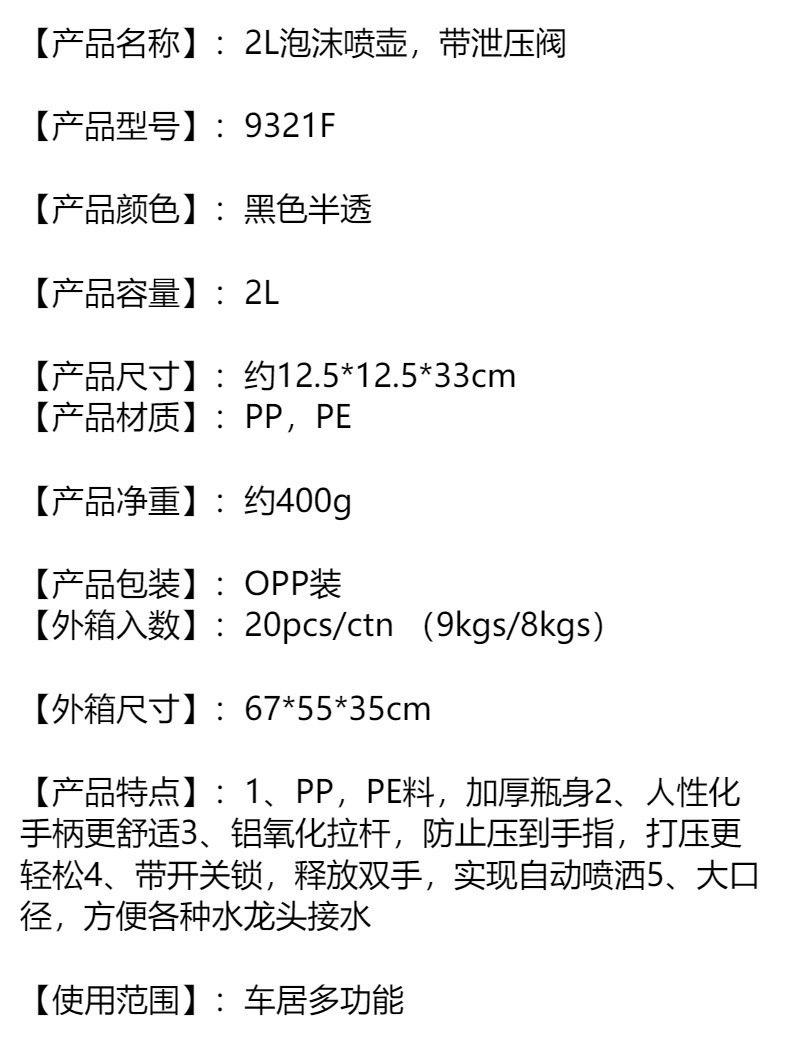 汽车洗车泡沫喷壶家用手持洗车喷洒式浇花园艺气压喷雾器手动壶2L