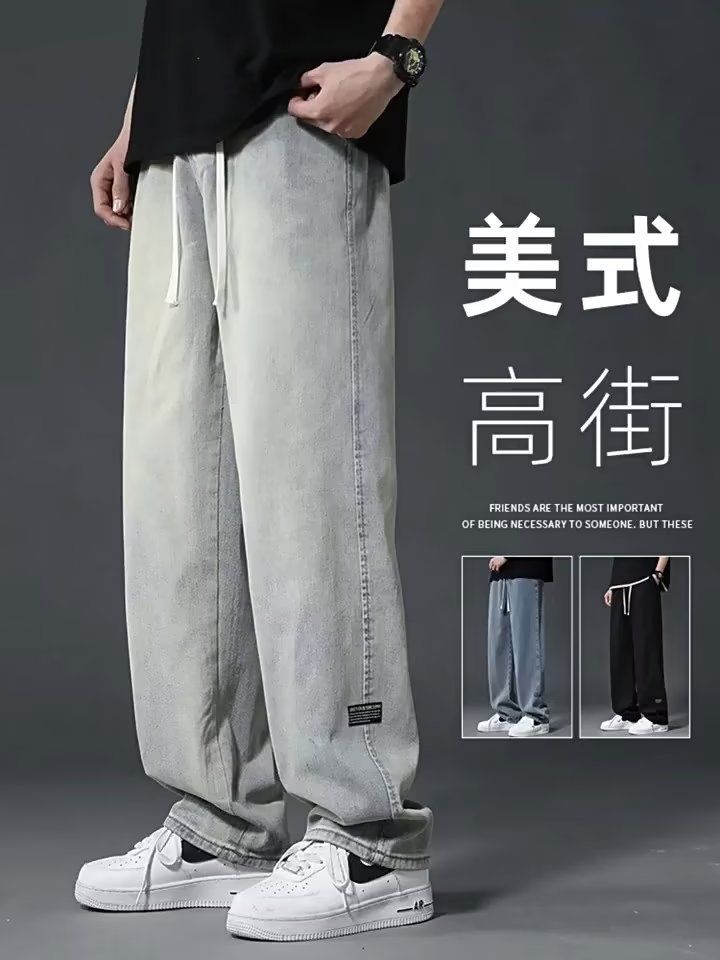 청바지 남성용 여름 얇은 트렌디 브랜드 느슨한 스트레이트 바지 남자 2024 봄과 가을 넓은 다리 캐주얼 바지스토어 가기
