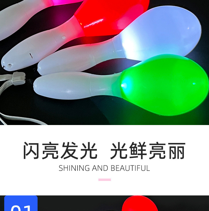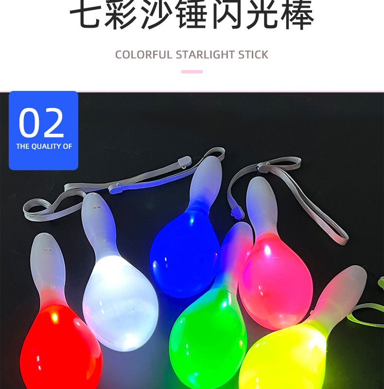这款LED发光沙锤不仅造型可爱,颜色多彩,还能奏出不同音符,是经常看演唱会、出入各种娱乐场所的潮人的一款助威助兴的小玩具。颜色丰富,量大也可以根据客户的要求订做颜色。也可以印刷LOGO,是广告促销,宣传不可多得的一款创意小礼品。
