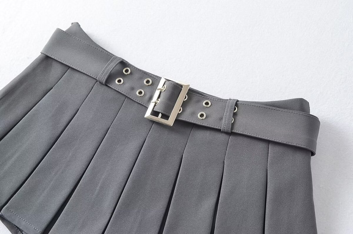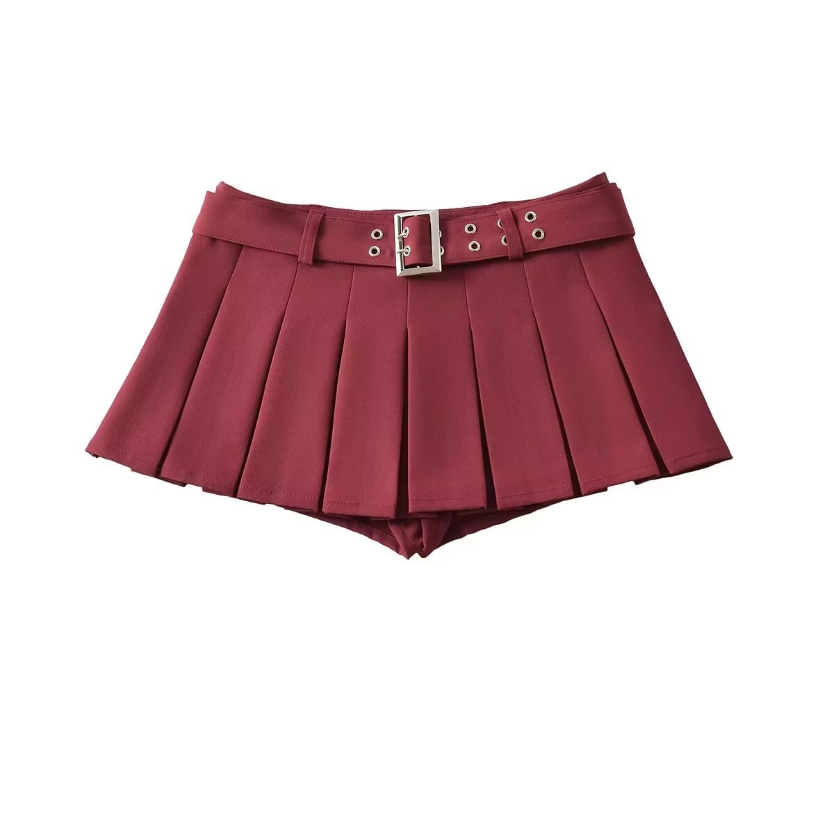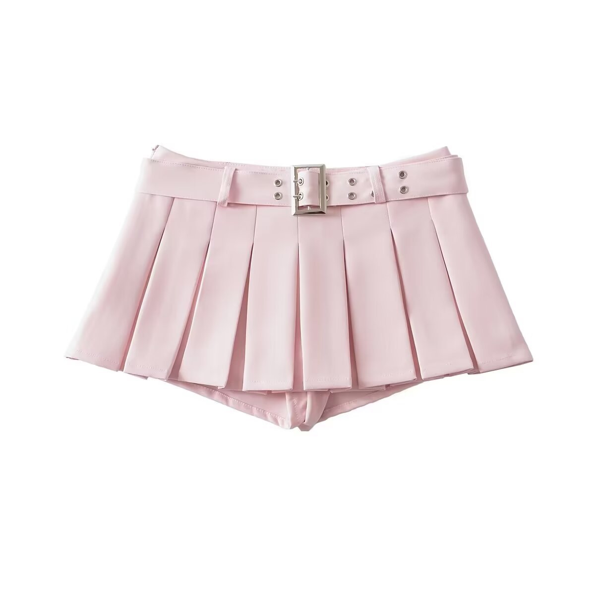 매운 스타일 케어 기계 낮은 허리 섹시한 미니 스커트 여성의 여름 복고풍 공기 눈 디자인 와이드 벨트 툴링 주름 치마 트렌디스토어 가기