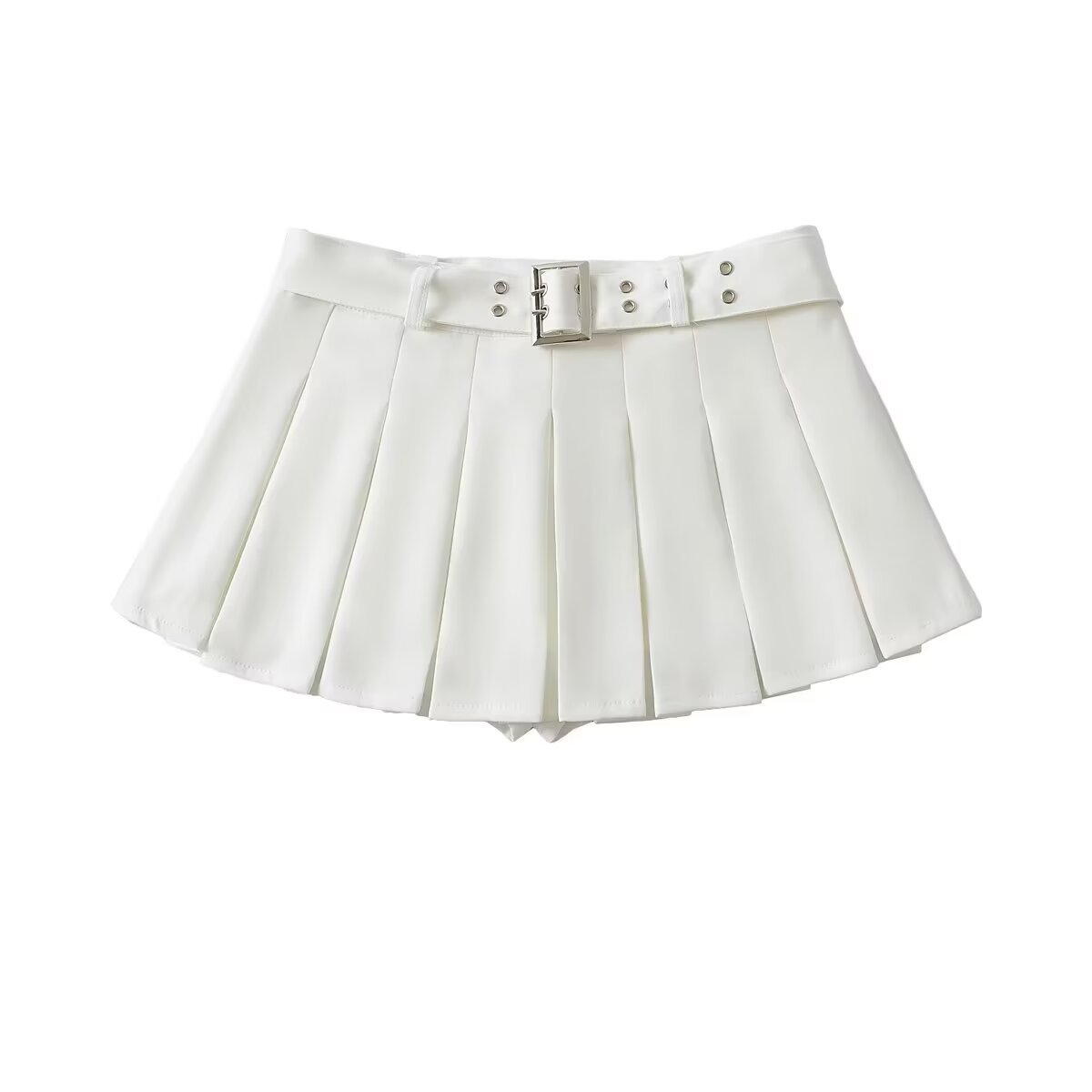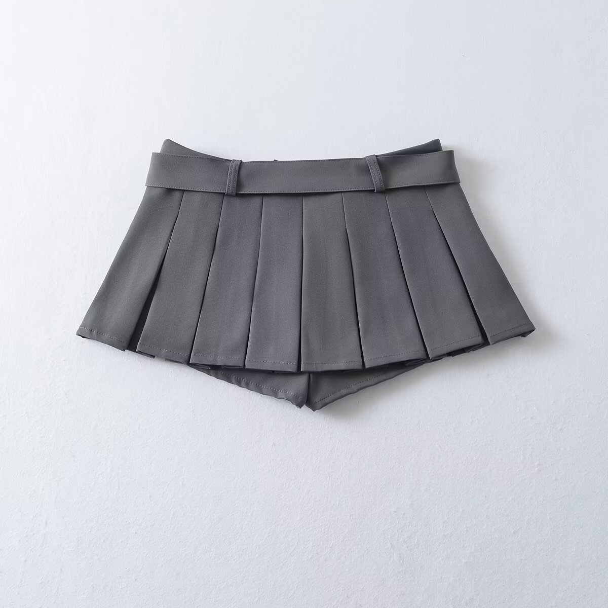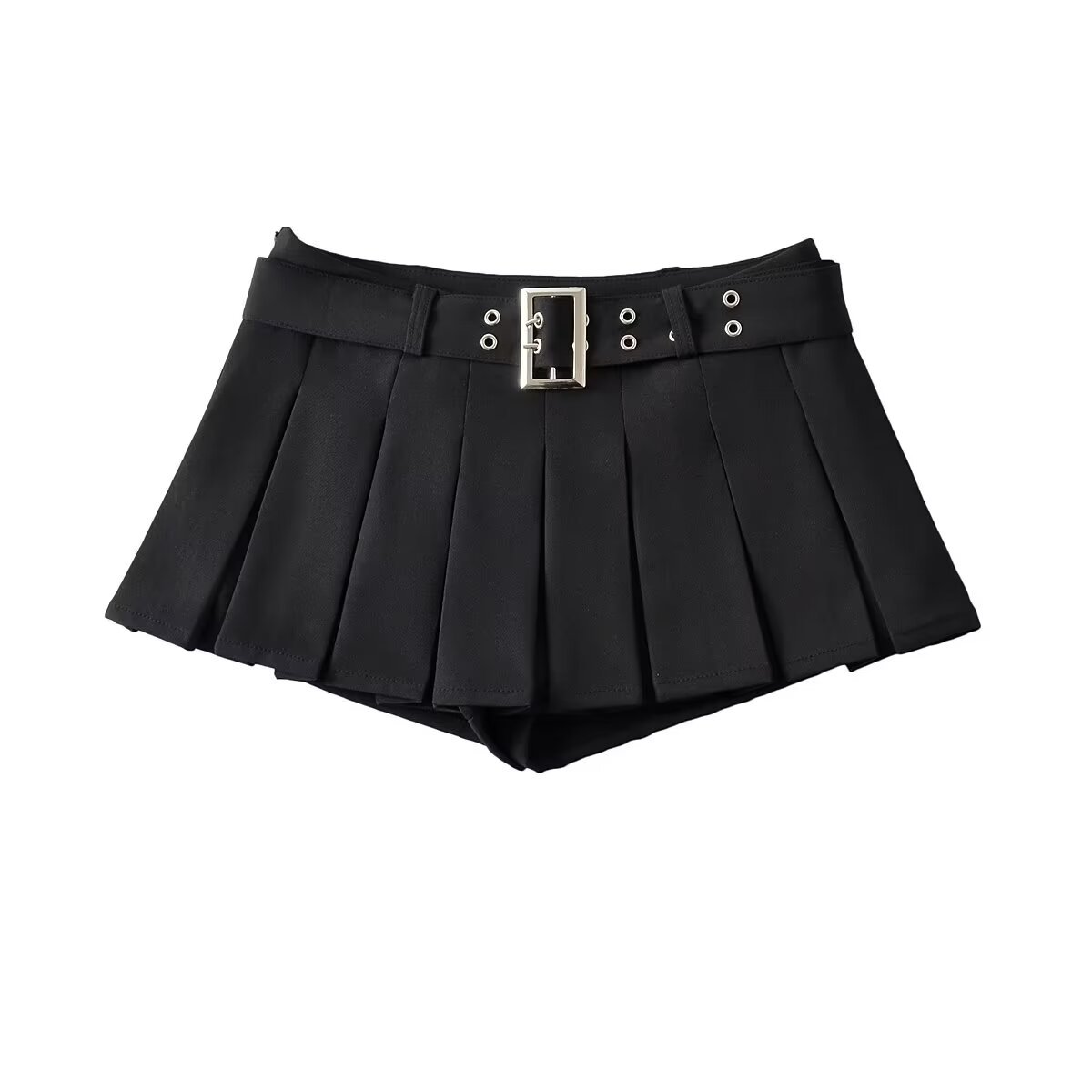 매운 스타일 케어 기계 낮은 허리 섹시한 미니 스커트 여성의 여름 복고풍 공기 눈 디자인 와이드 벨트 툴링 주름 치마 트렌디스토어 가기