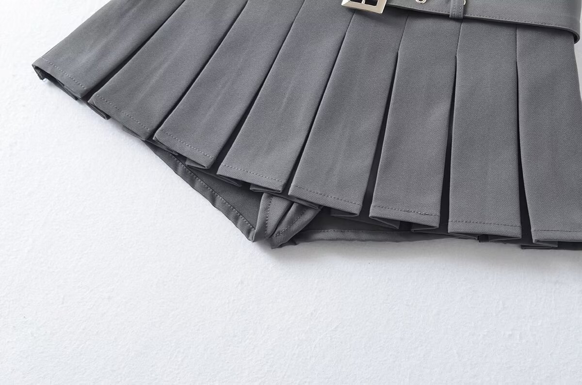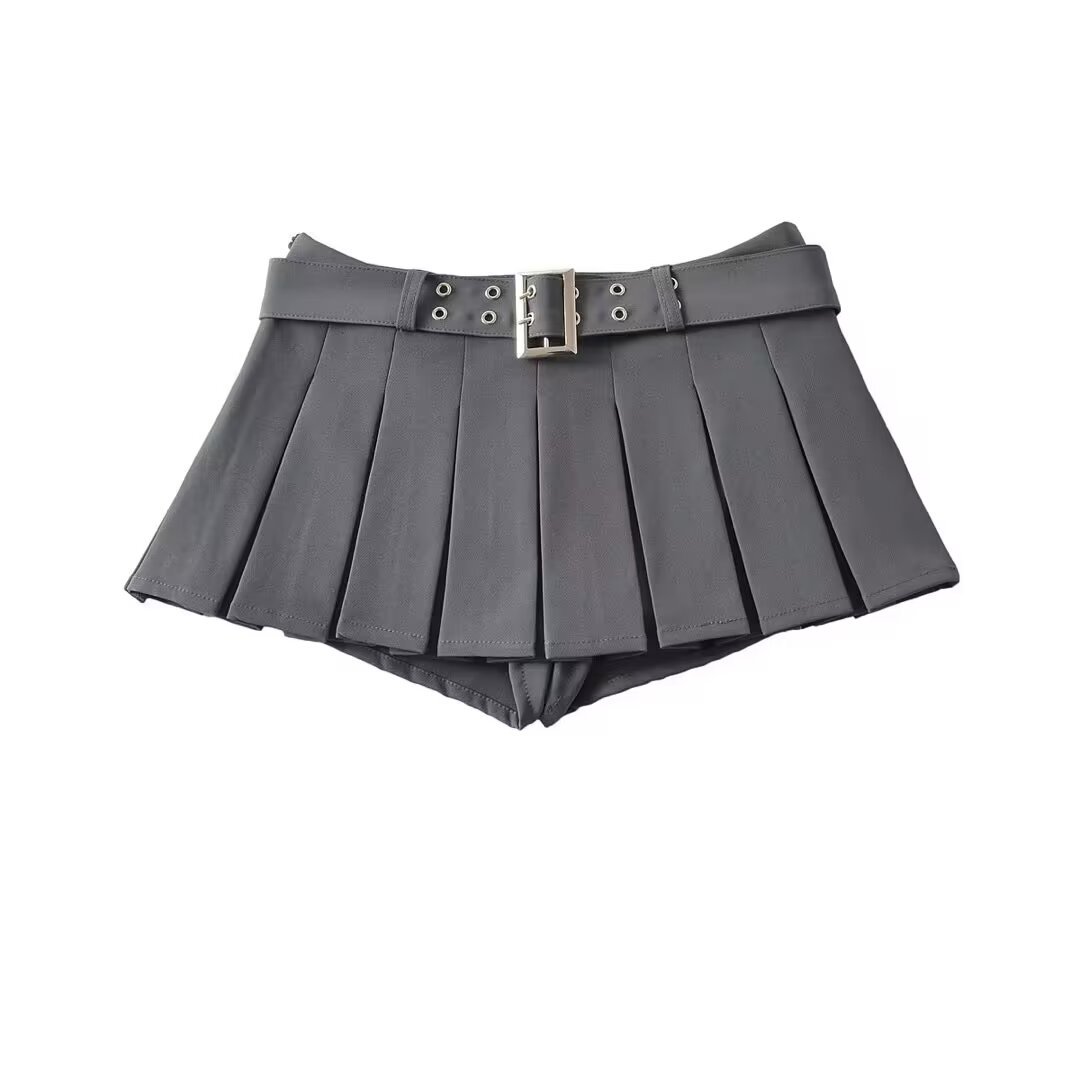 매운 스타일 케어 기계 낮은 허리 섹시한 미니 스커트 여성의 여름 복고풍 공기 눈 디자인 와이드 벨트 툴링 주름 치마 트렌디