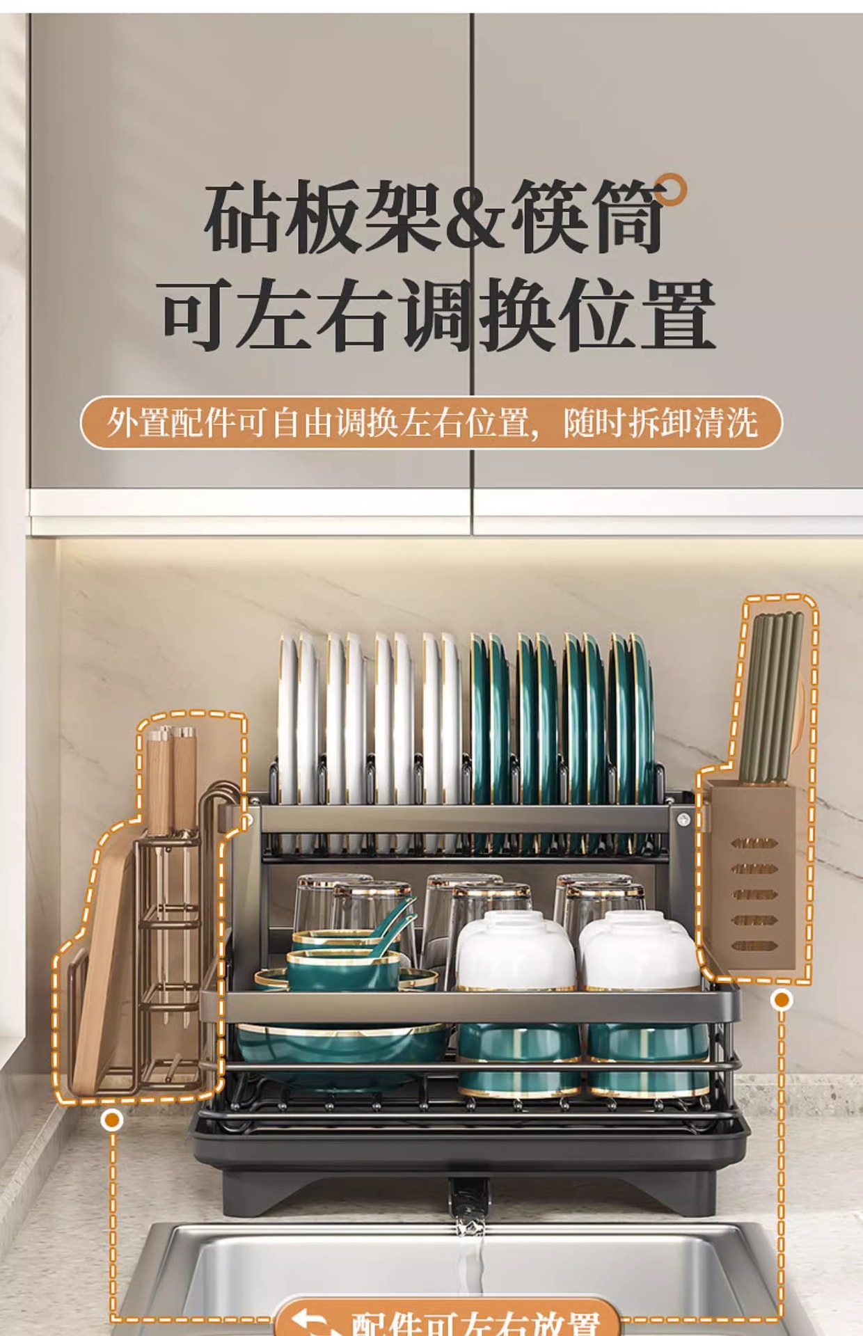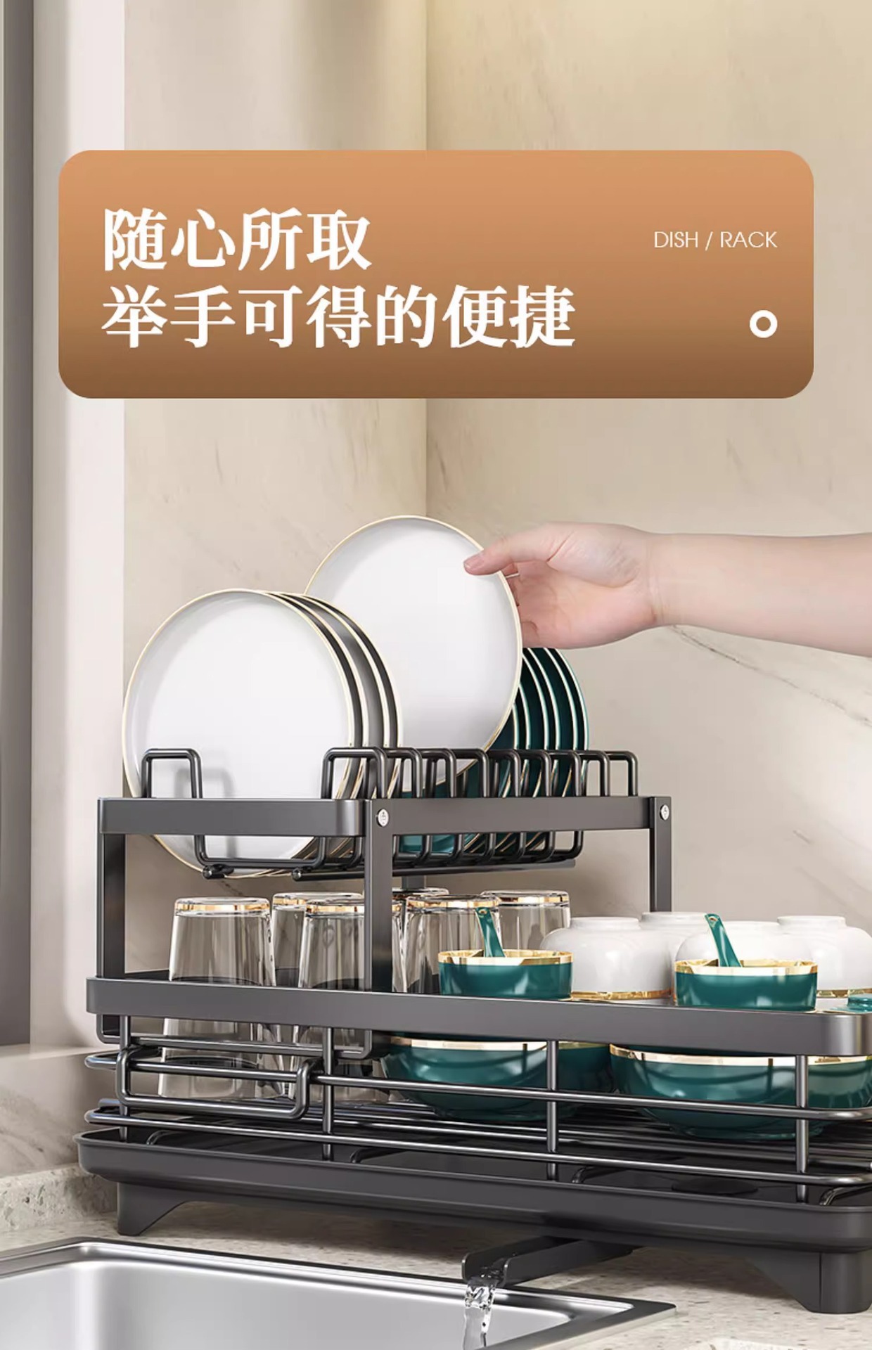 간단한 주방 수납 선반 다층 수납 용품 접시 선반 가정용 배수 선반 소형 수납 선반 접시 선반