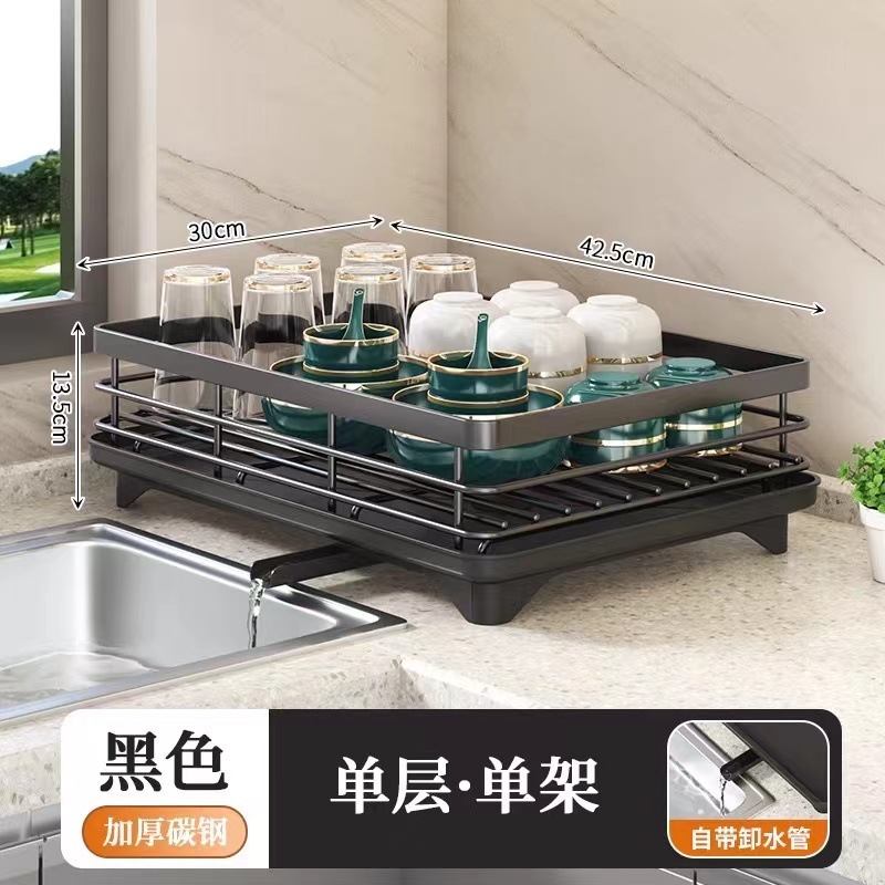 간단한 주방 수납 선반 다층 수납 용품 접시 선반 가정용 배수 선반 소형 수납 선반 접시 선반스토어 가기
