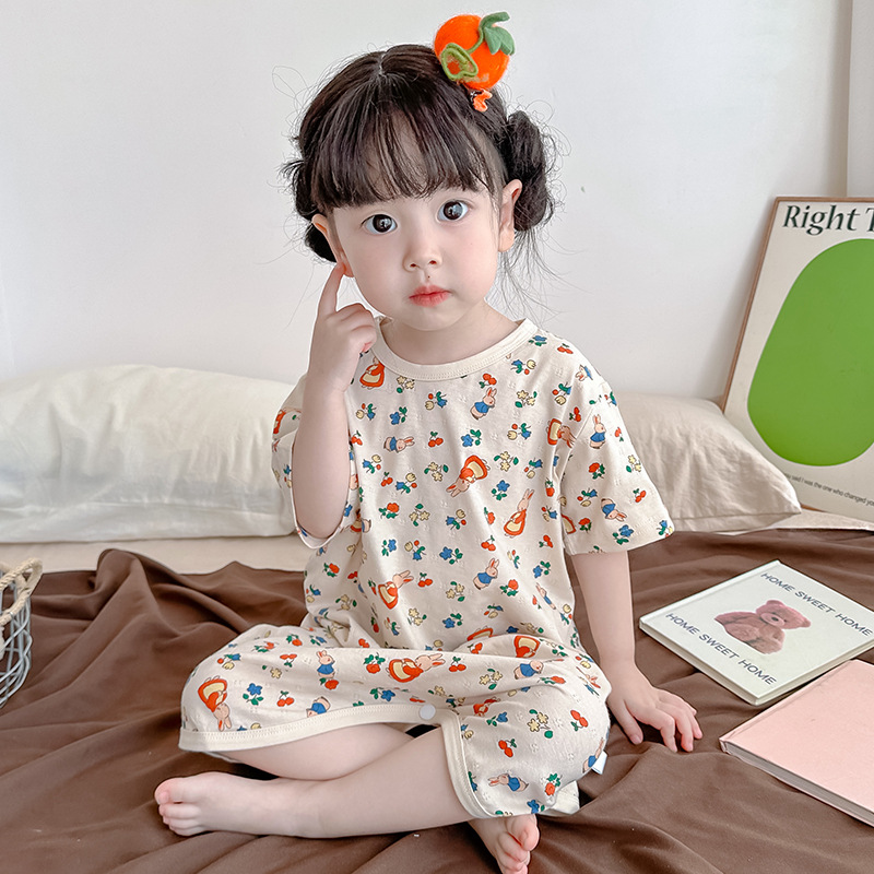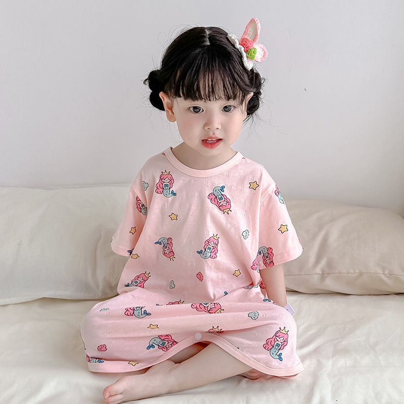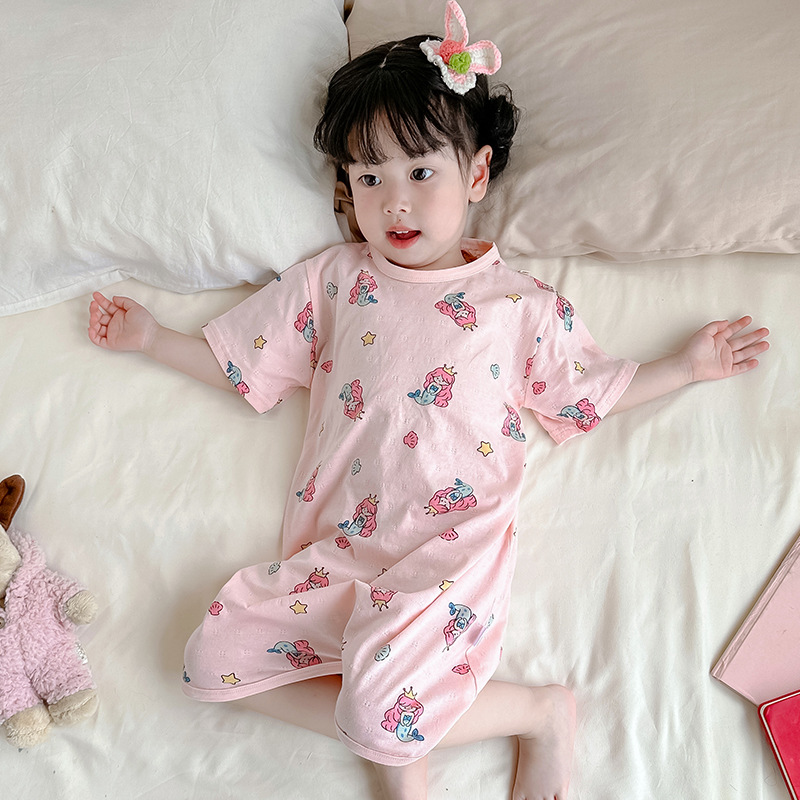 2025 새로운 여자 잠옷 여름 어린이 잠옷 공주 스타일 아기 원피스 스커트 순수 코튼 여자 잠옷 스커트