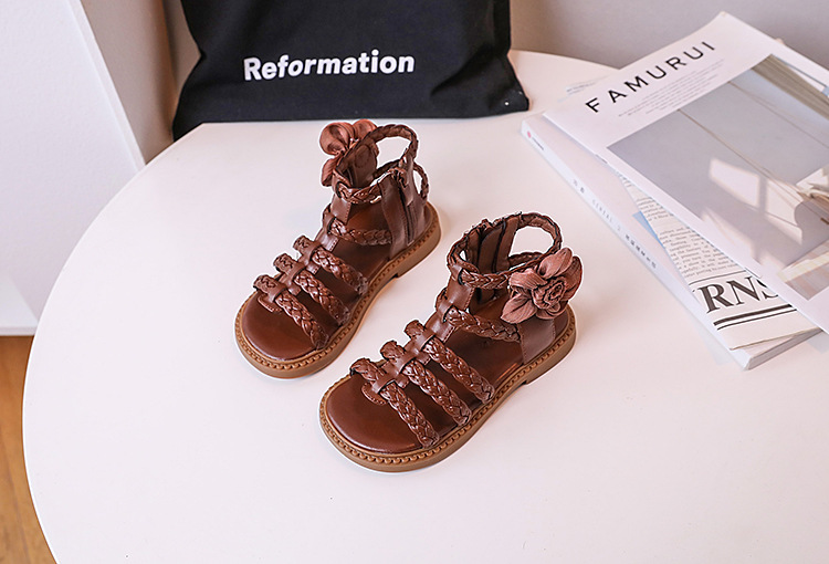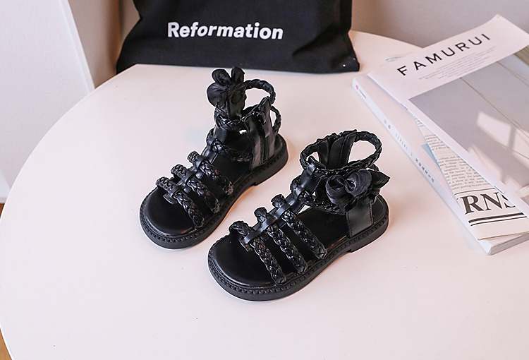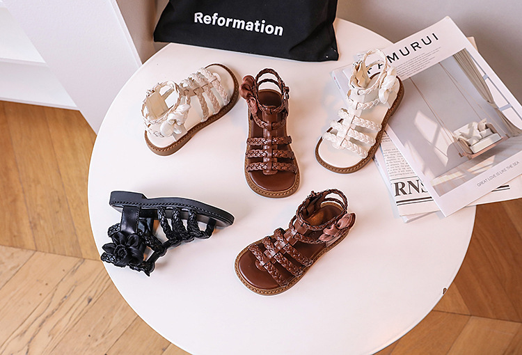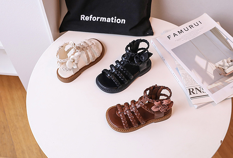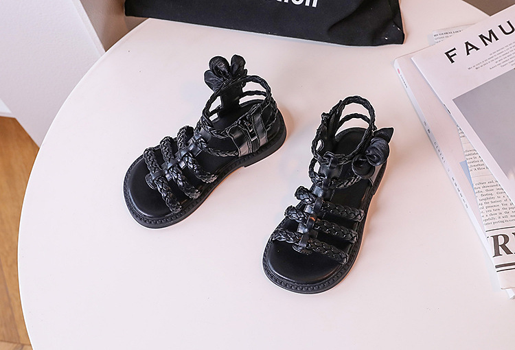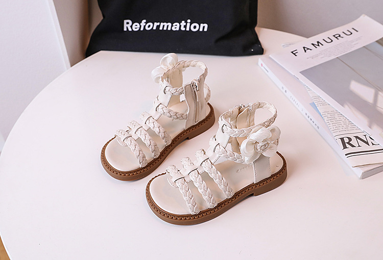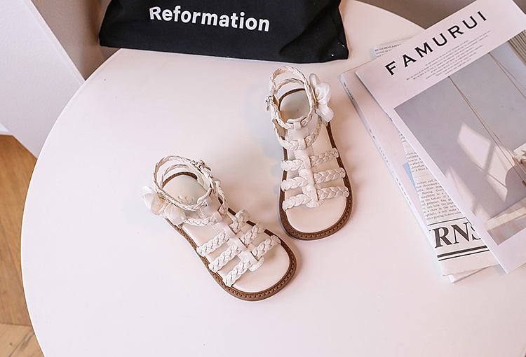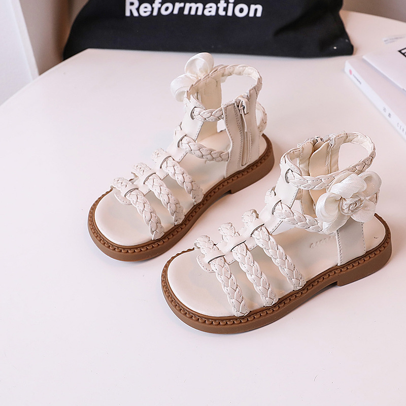 여자 오픈 발가락 샌들 2024 여름 새 소녀의 로마 신발 어린이 스타일 공주 신발 여름 비치 신발 트렌디