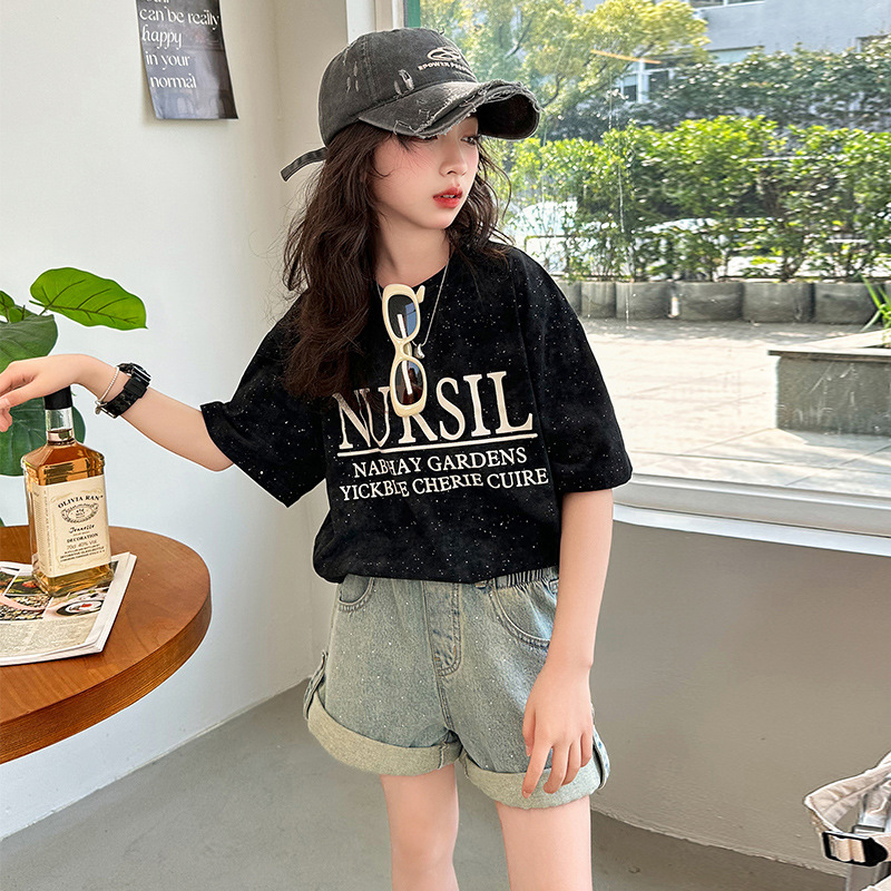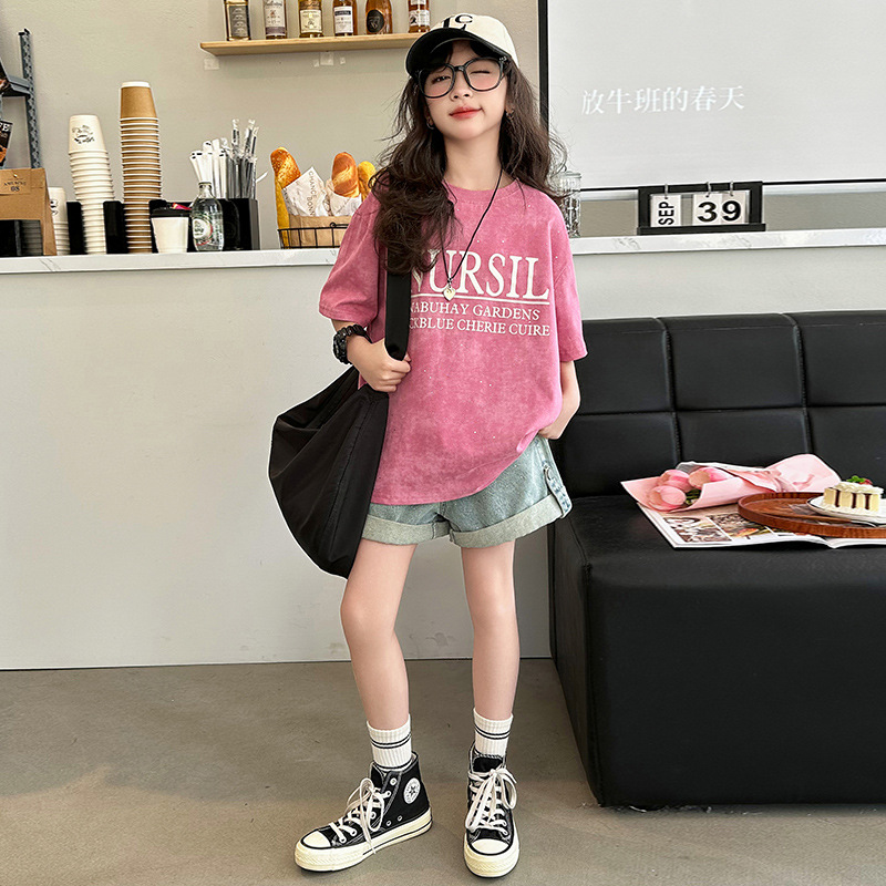 여아 반팔 티셔츠 여름 2025 신상 인기 상의 중대형 아동 반팔 루즈핏 어린이 긴팔 티셔츠 캐주얼 다용도스토어 가기