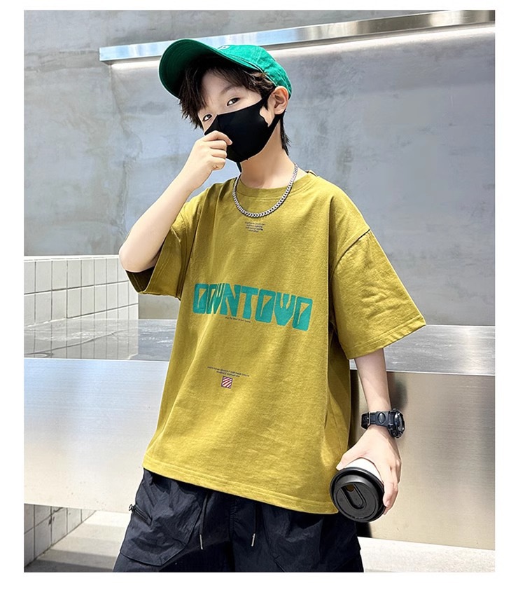 아동복 소년 여름 티셔츠 코튼 반팔 2024 새로운 스타일 큰 어린이 여름 소년 여름 유행 브랜드 톱 T스토어 가기