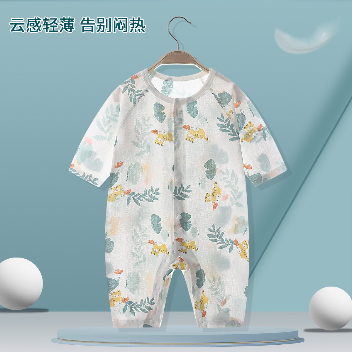 아기의 점프 수트 여름 신생아 옷 아기의 시외 옷 반팔 에어컨 옷 통기성 경량 여름 옷