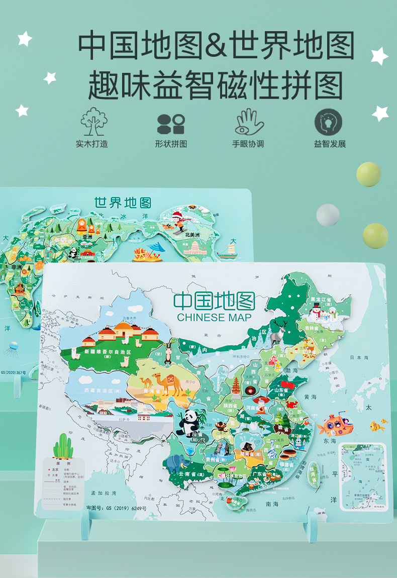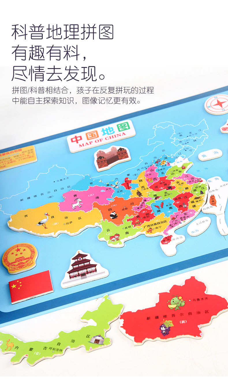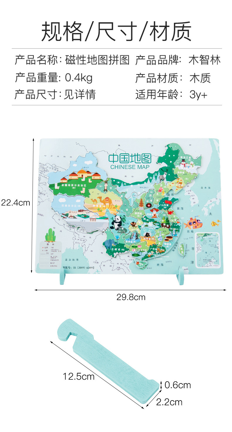 나무 중국지도 퍼즐 자기 버전 세계 지리 자기 양면 퍼즐 초등학생 조기 교육 교육 장난감스토어 가기