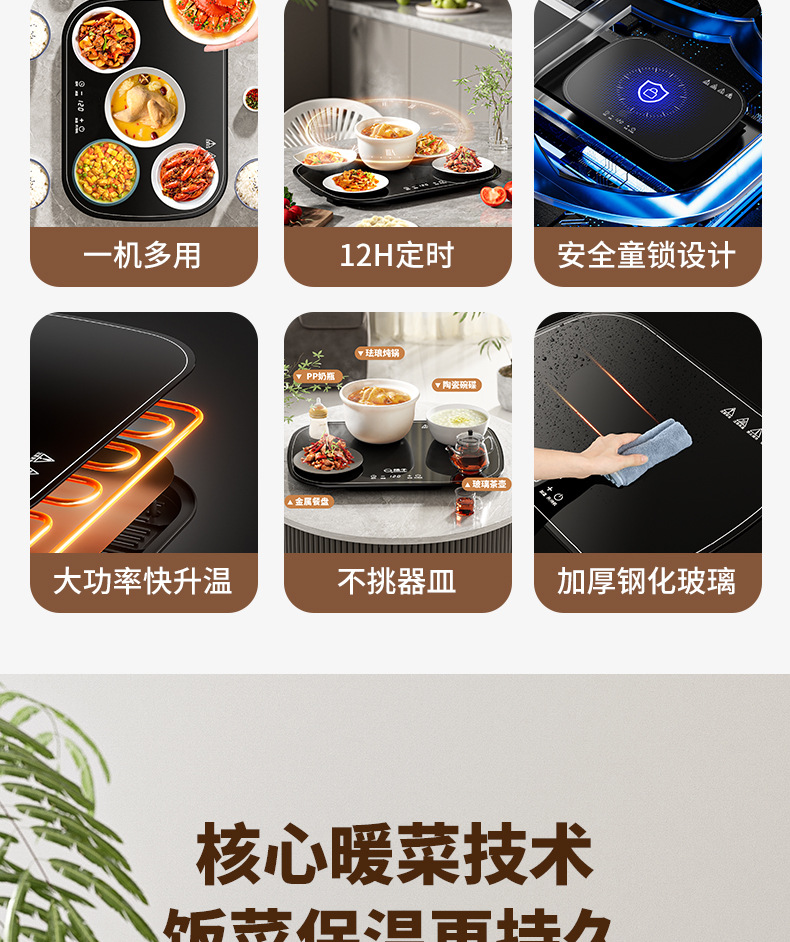 家用饭菜保温板智能恒温定时方形餐桌热菜板拼接暖菜板饭菜加热板