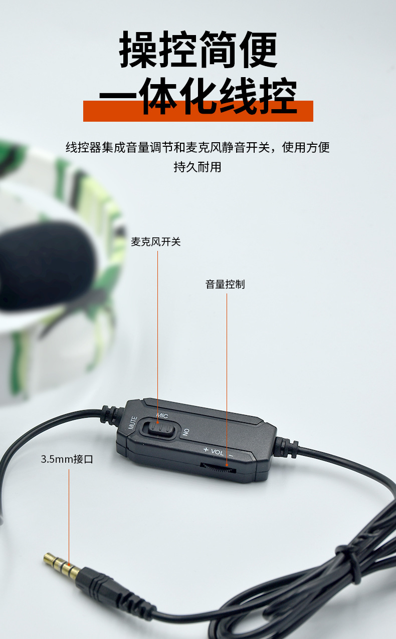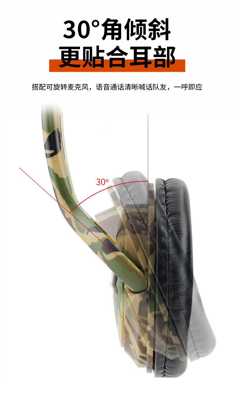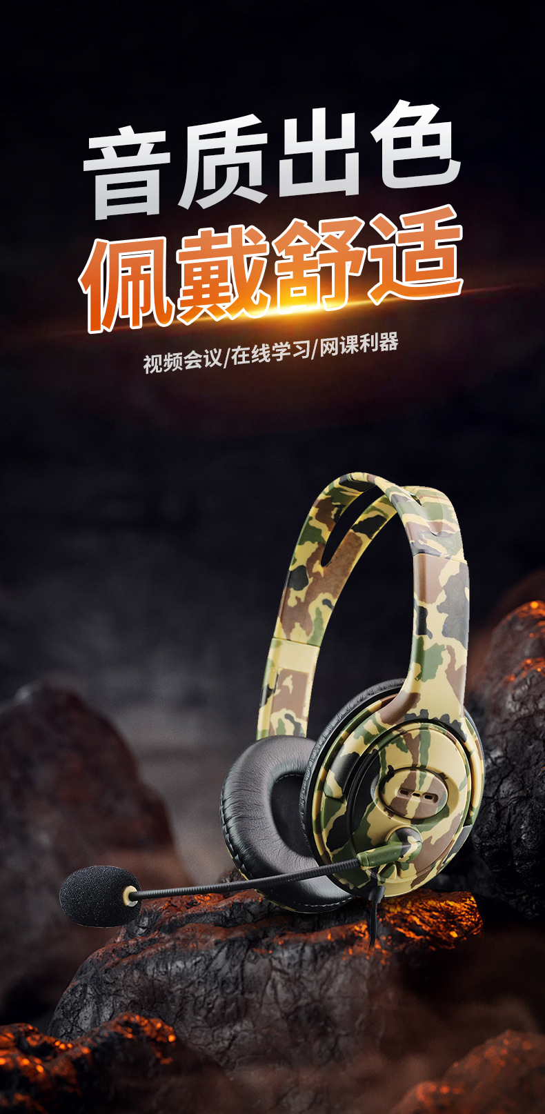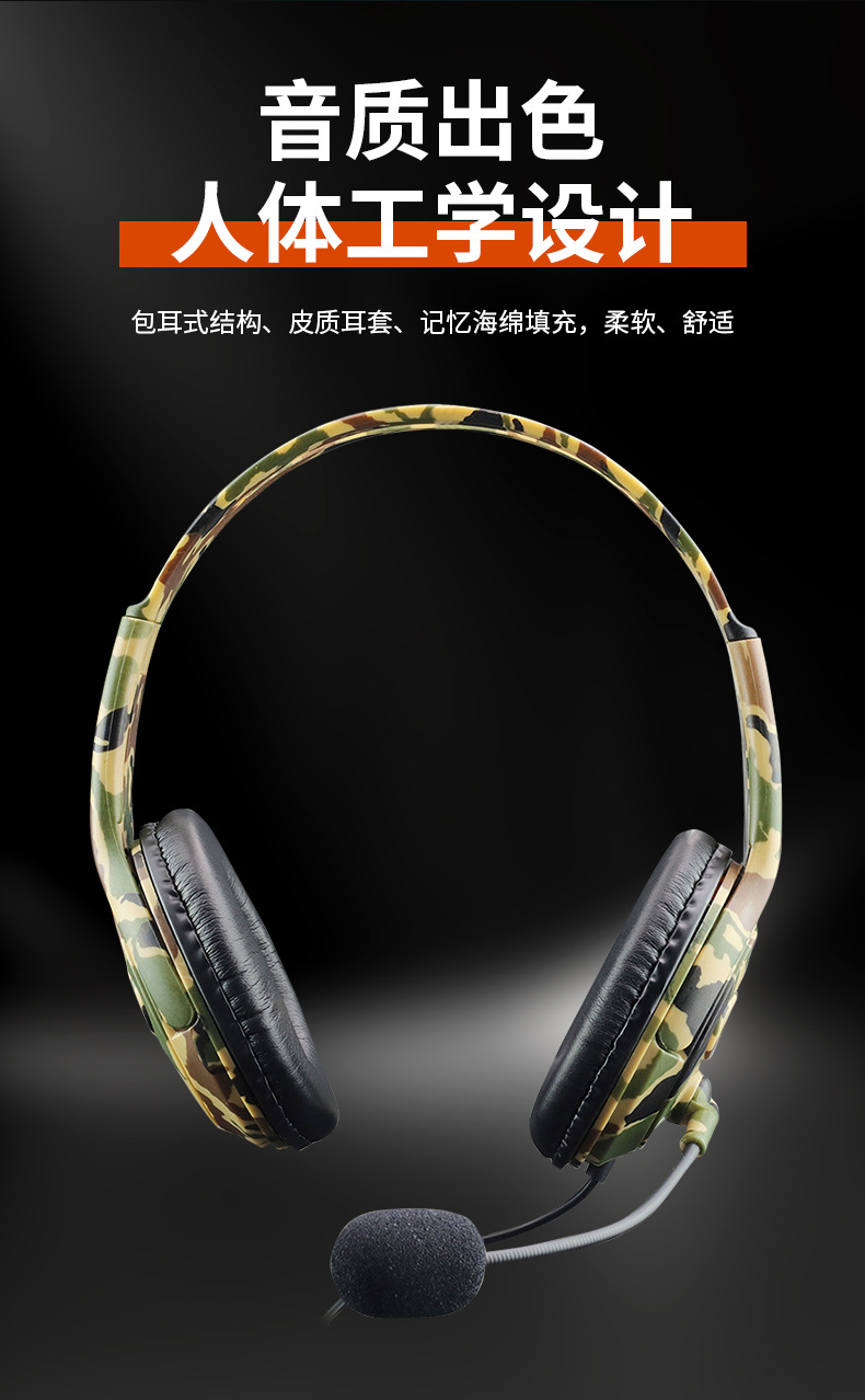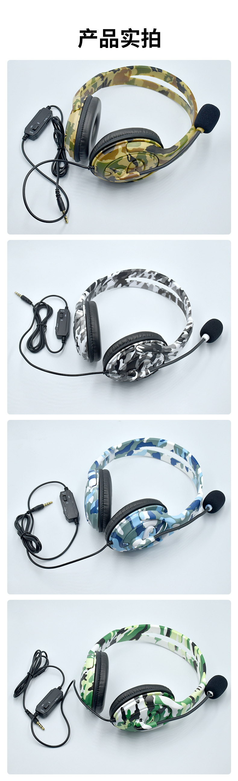 头戴式耳机 游戏耳机  带线耳机 迷彩耳机