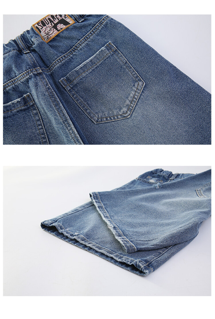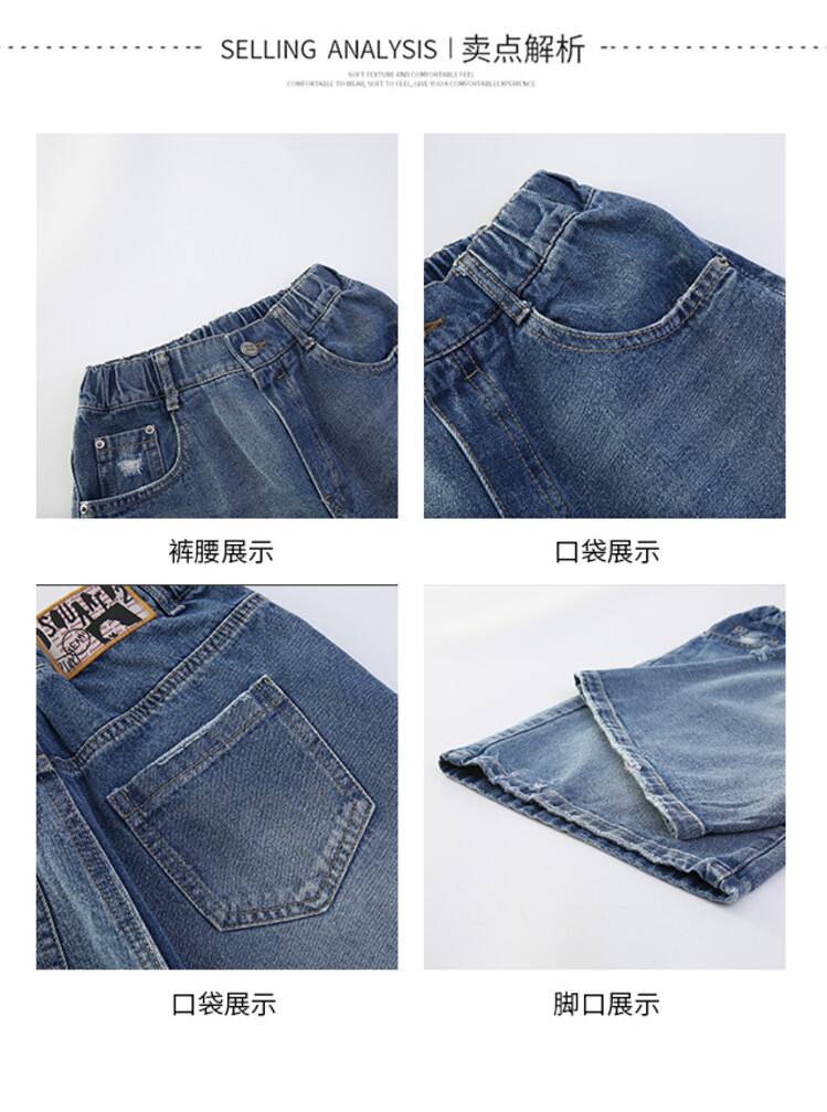 여아 데님 미드팬츠 2025 여름 스타일 찢어진 반바지 루즈한 5부 팬츠 중대형 아동복 여아 바지 트렌디스토어 가기
