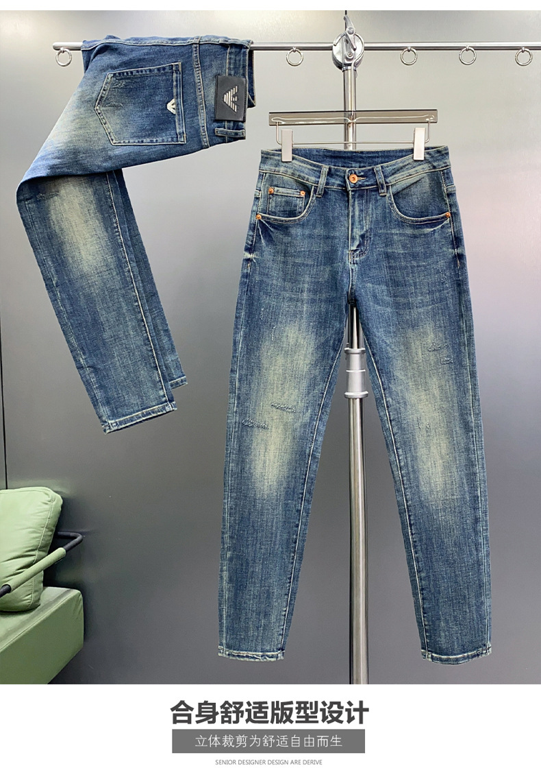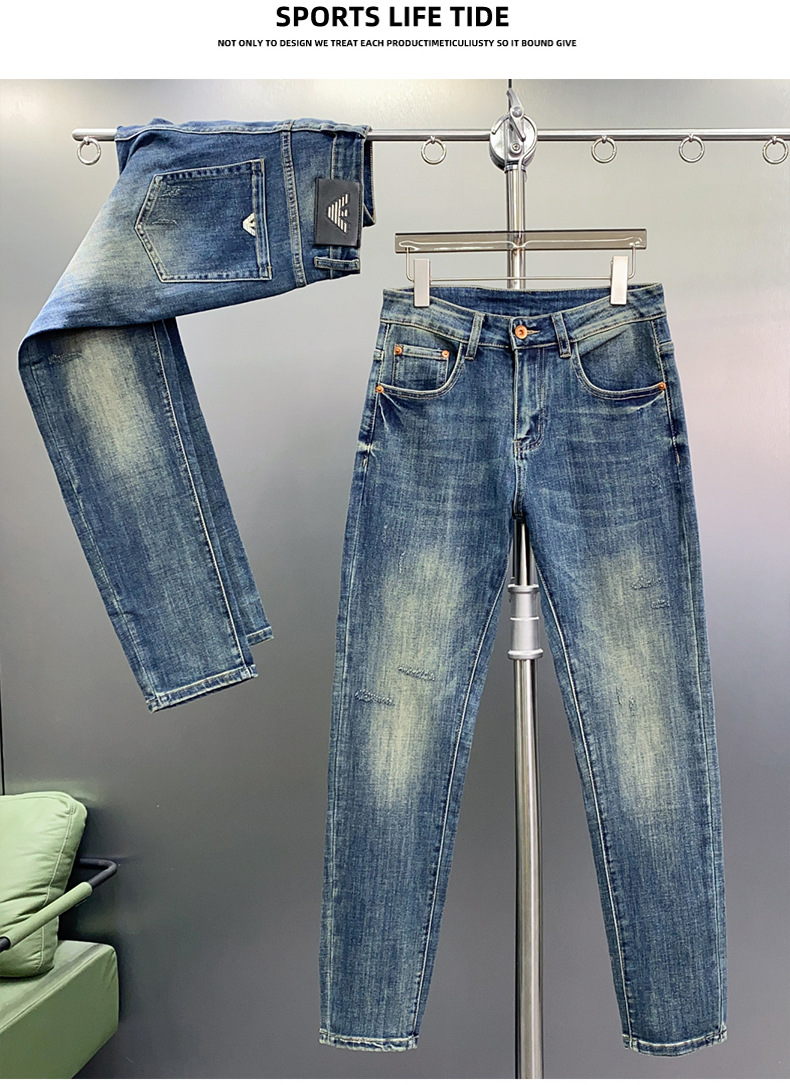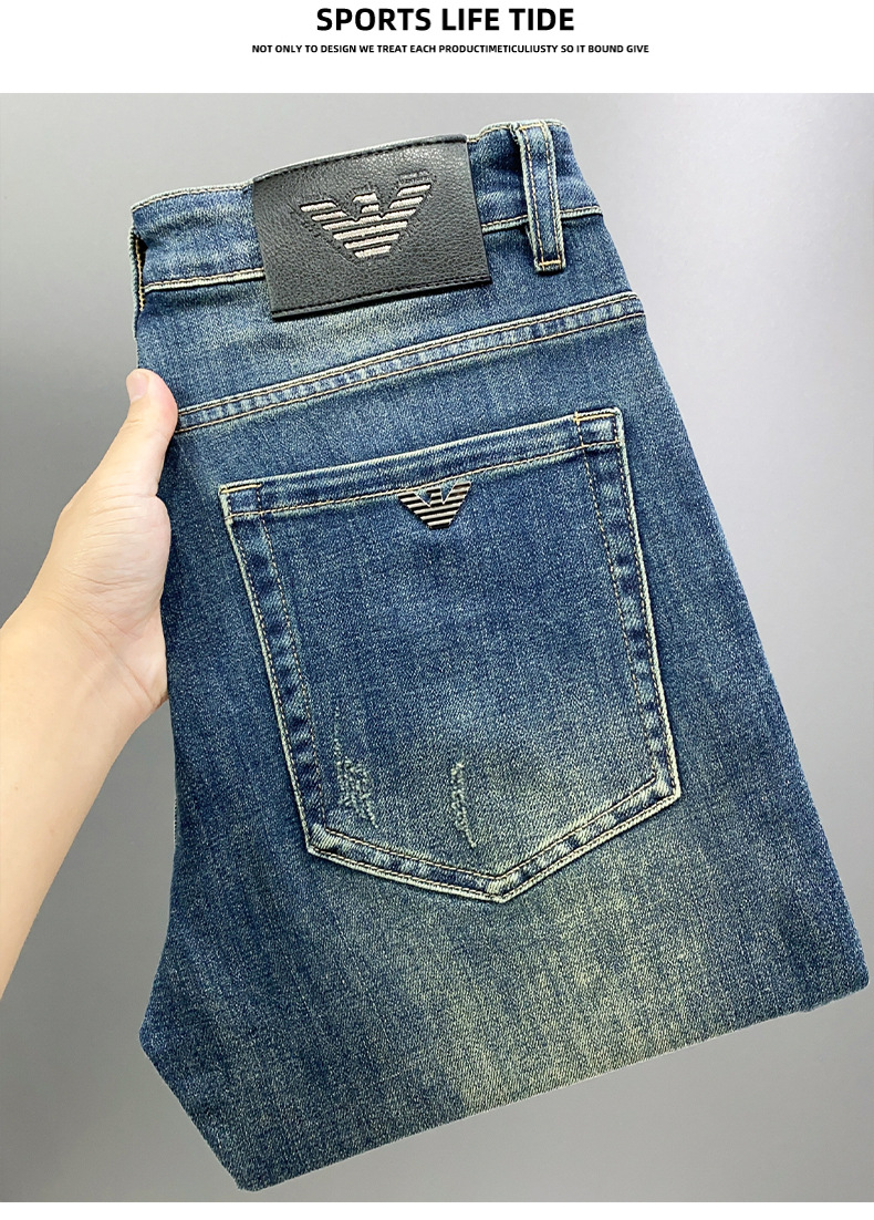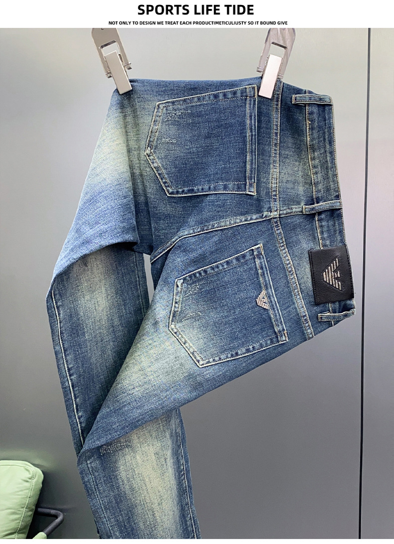 하이 엔드 청바지 남자 느슨한 스트레이트 바지 봄과 여름 캐주얼 올 매치 바지 남자 유럽 라이트 블루스토어 가기