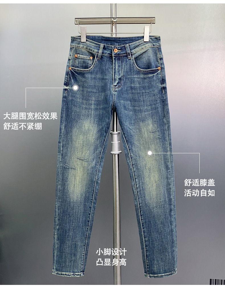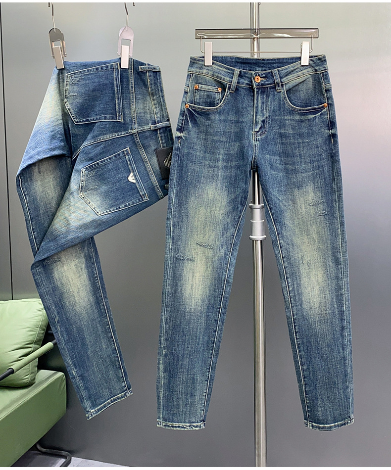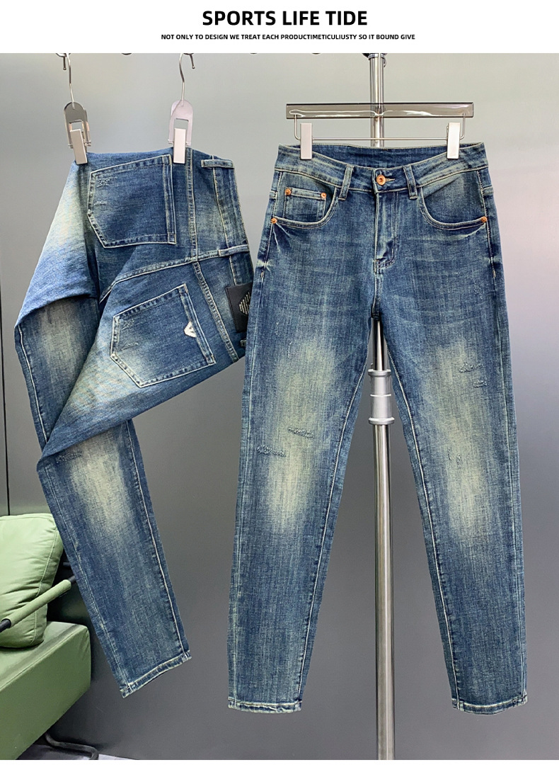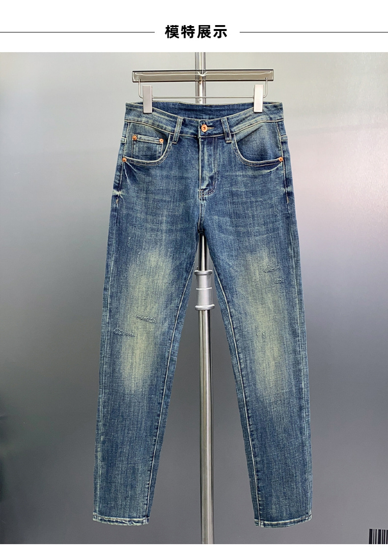 하이 엔드 청바지 남자 느슨한 스트레이트 바지 봄과 여름 캐주얼 올 매치 바지 남자 유럽 라이트 블루스토어 가기