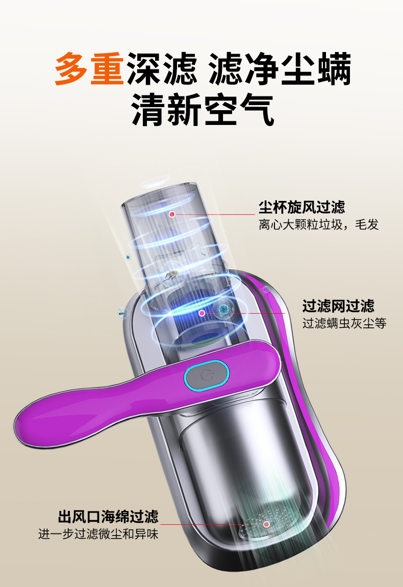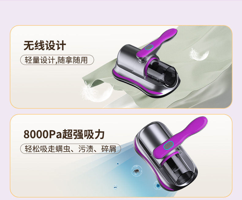 가정용 무선 충전 침대 살균제 UV 살균제 먼지 상자 휴대용 진공 청소기 살비제