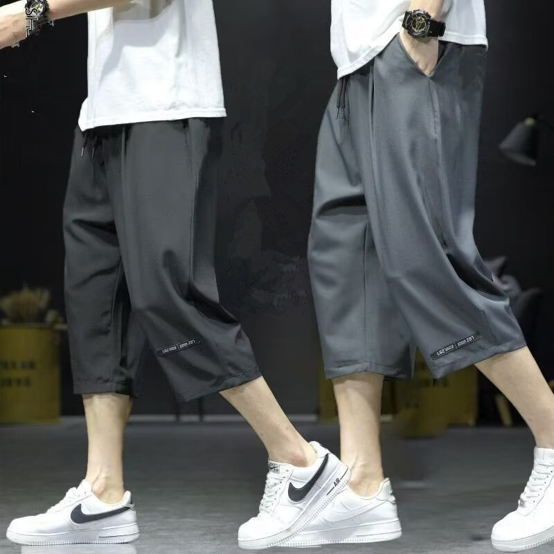 자른 바지 남자 여름 얇은 아이스 실크 캐주얼 바지 남자 느슨한 스포츠 반바지 작업복 유행 자른 바지스토어 가기
