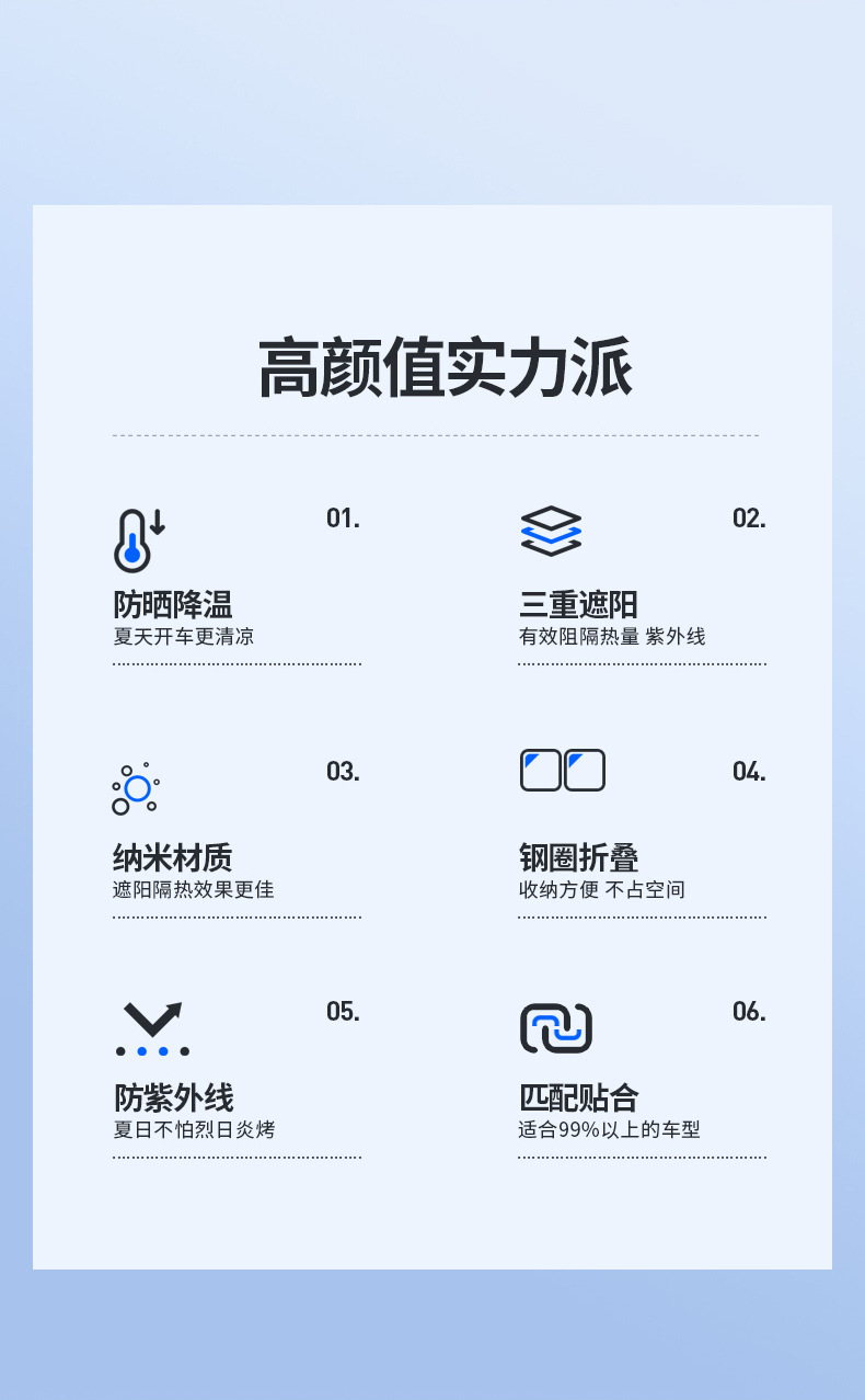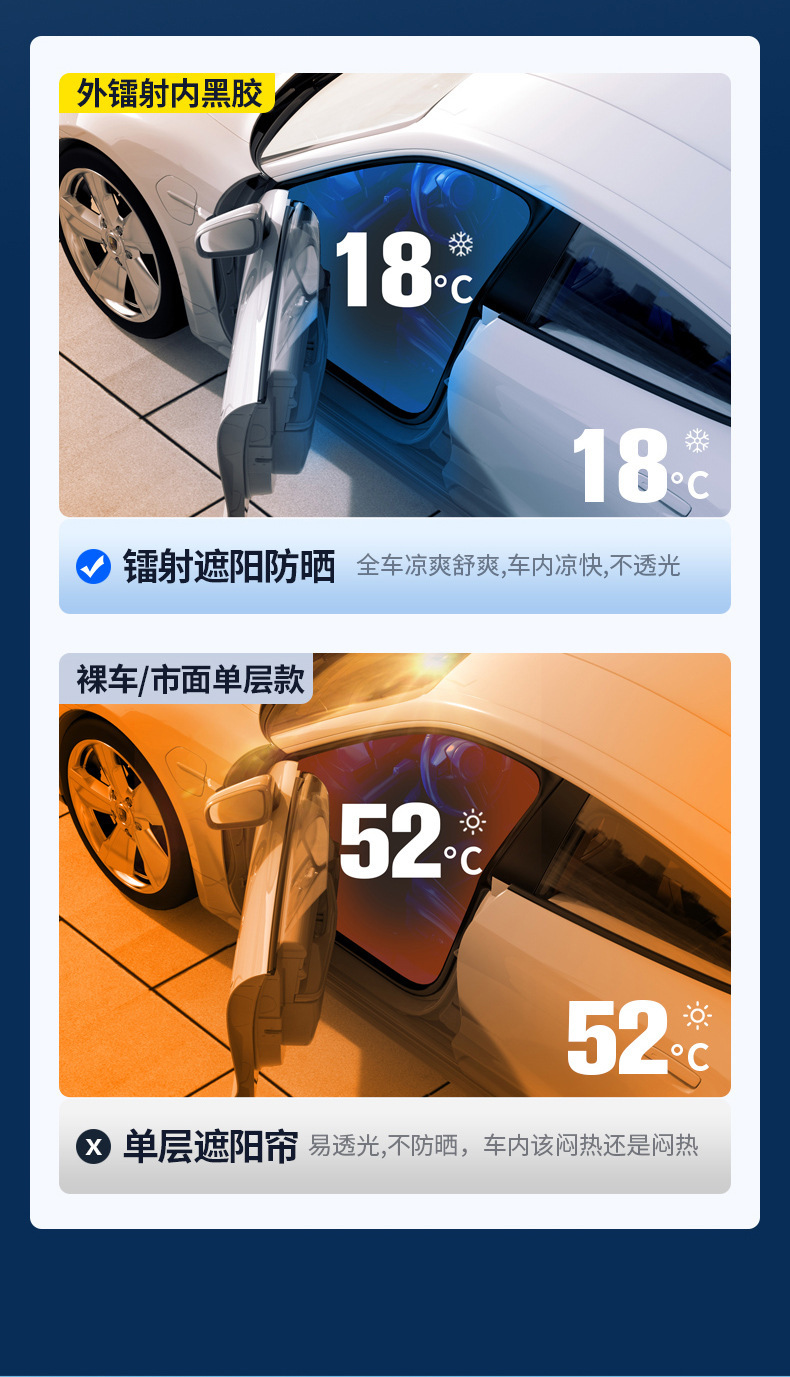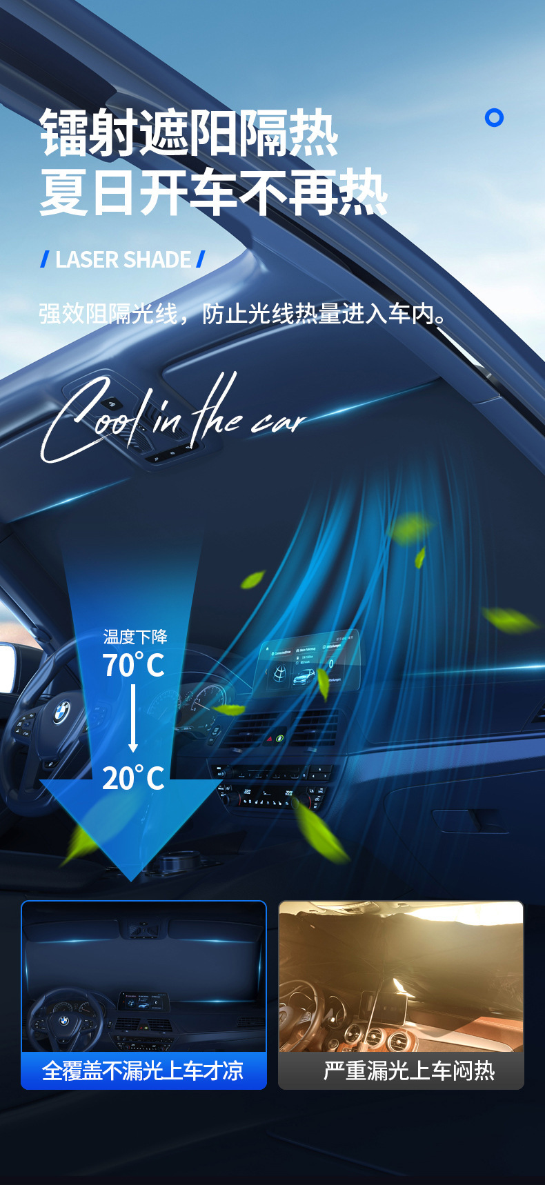 强烈的阳光从侧窗直射进来,不仅刺眼,影响驾车,难以忍受,高温还会损坏到车内的真皮内饰,本遮阳挡,有效隔热及高温照射,方便使用!