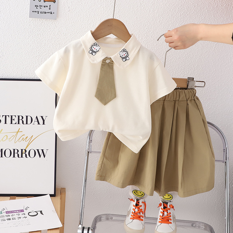 2024 새로운 여름 남성과 여성 형제 자매 짧은 소매 무료면 바지 바지 2 조각 공장 도매