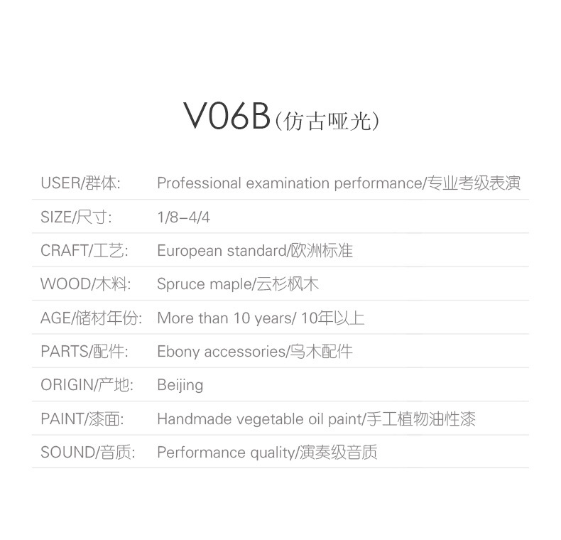 V06B 바이올린 전문 학년 시험 학년 어린이 초보자 성능 학년 수제 솔리드 우드 바이올린