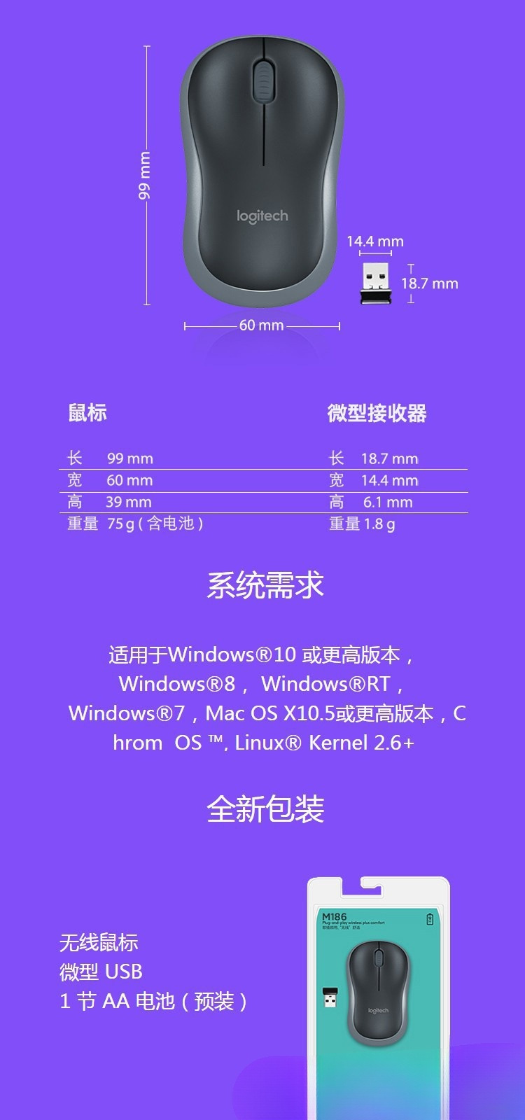 로지텍 M186 무선 마우스 USB 인터페이스 비즈니스 휴대용 사무실 마우스 소형 휴대용 게임 마우스스토어 가기