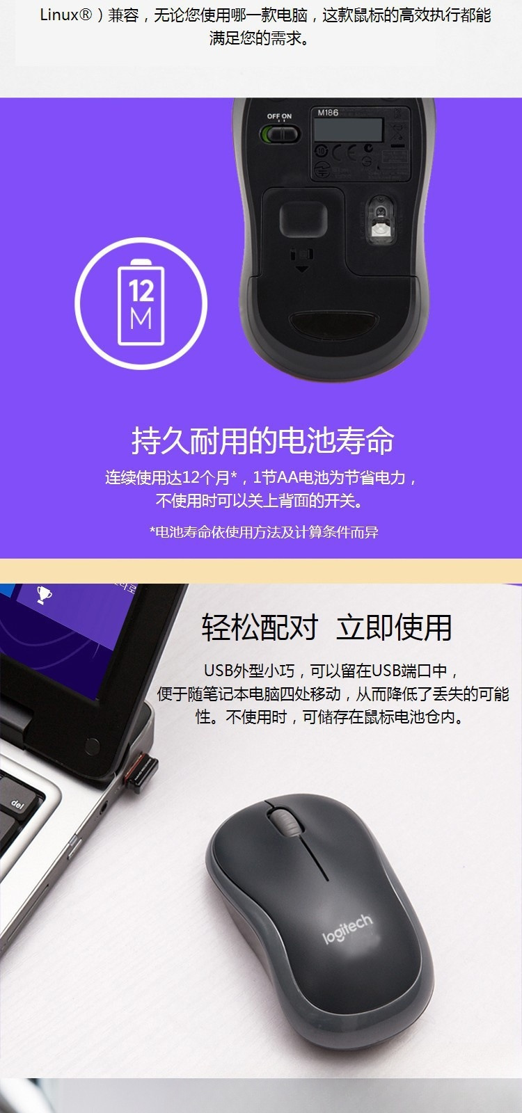 로지텍 M186 무선 마우스 USB 인터페이스 비즈니스 휴대용 사무실 마우스 소형 휴대용 게임 마우스