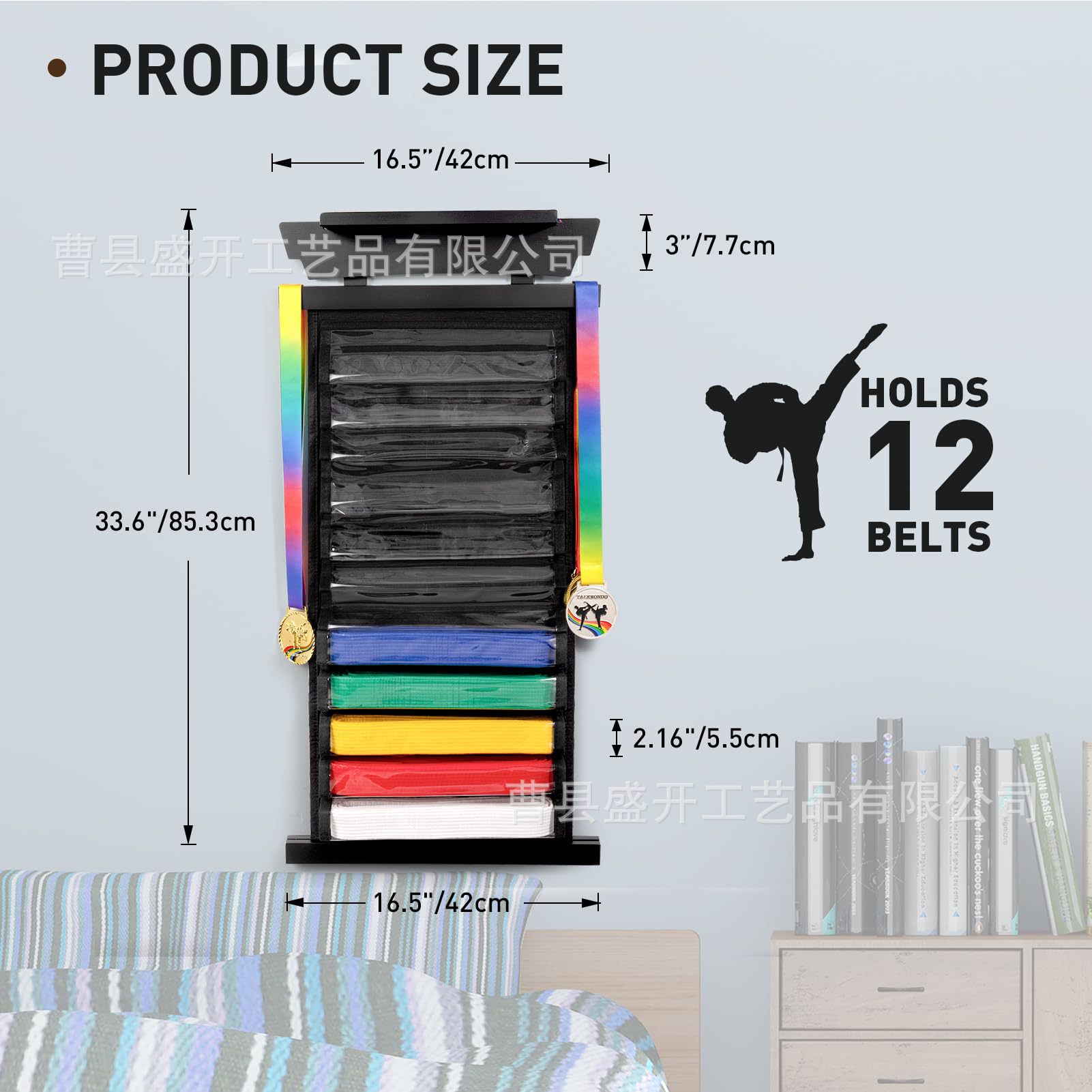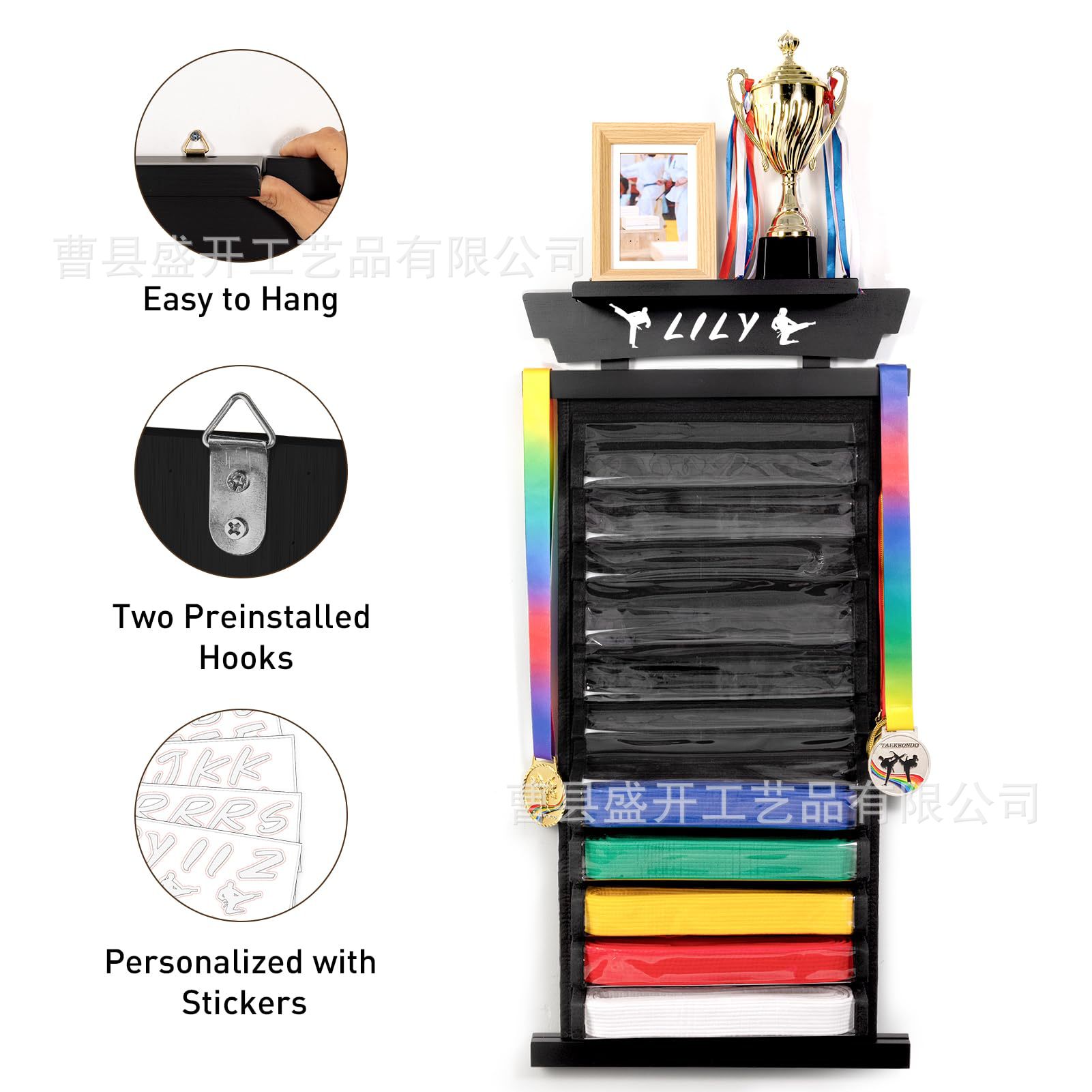 나무 태권도 벨트 디스플레이 랙 벽걸이 형 도로 벨트 저장 랙 태권도 벨트 핏 랙 공장 직접 공급