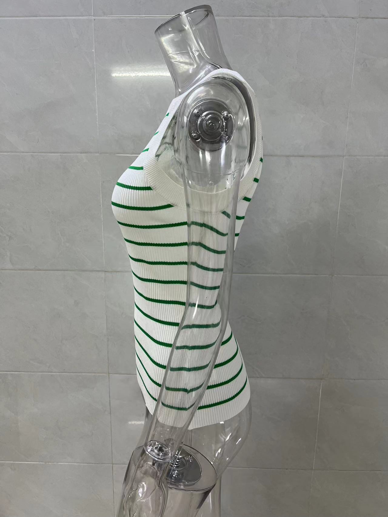 2026년 신상 유럽 및 미국 해외배송 아마존 핫걸 상의 섹시 민소매 스트라이프 이너웨어/아우터웨어 니트 조끼 여성용