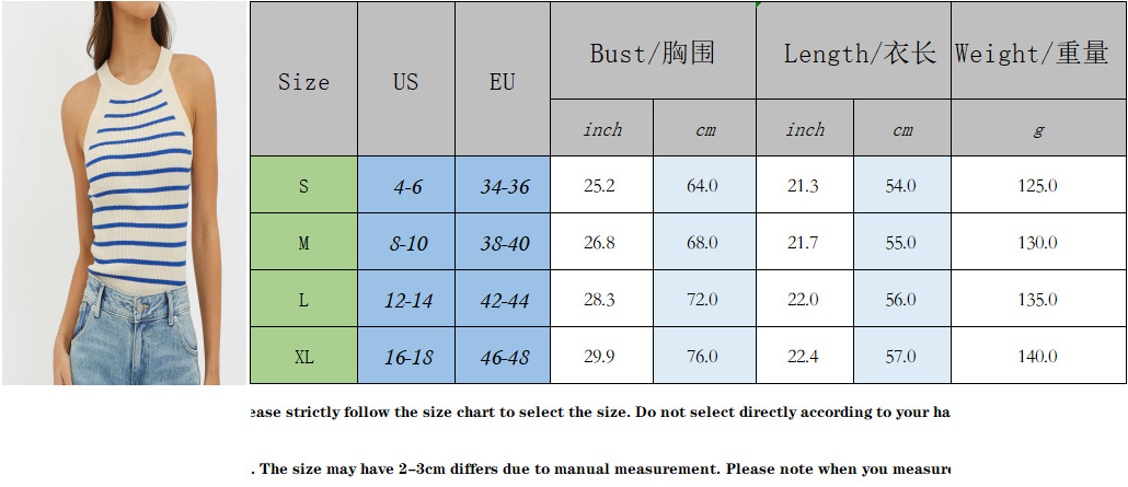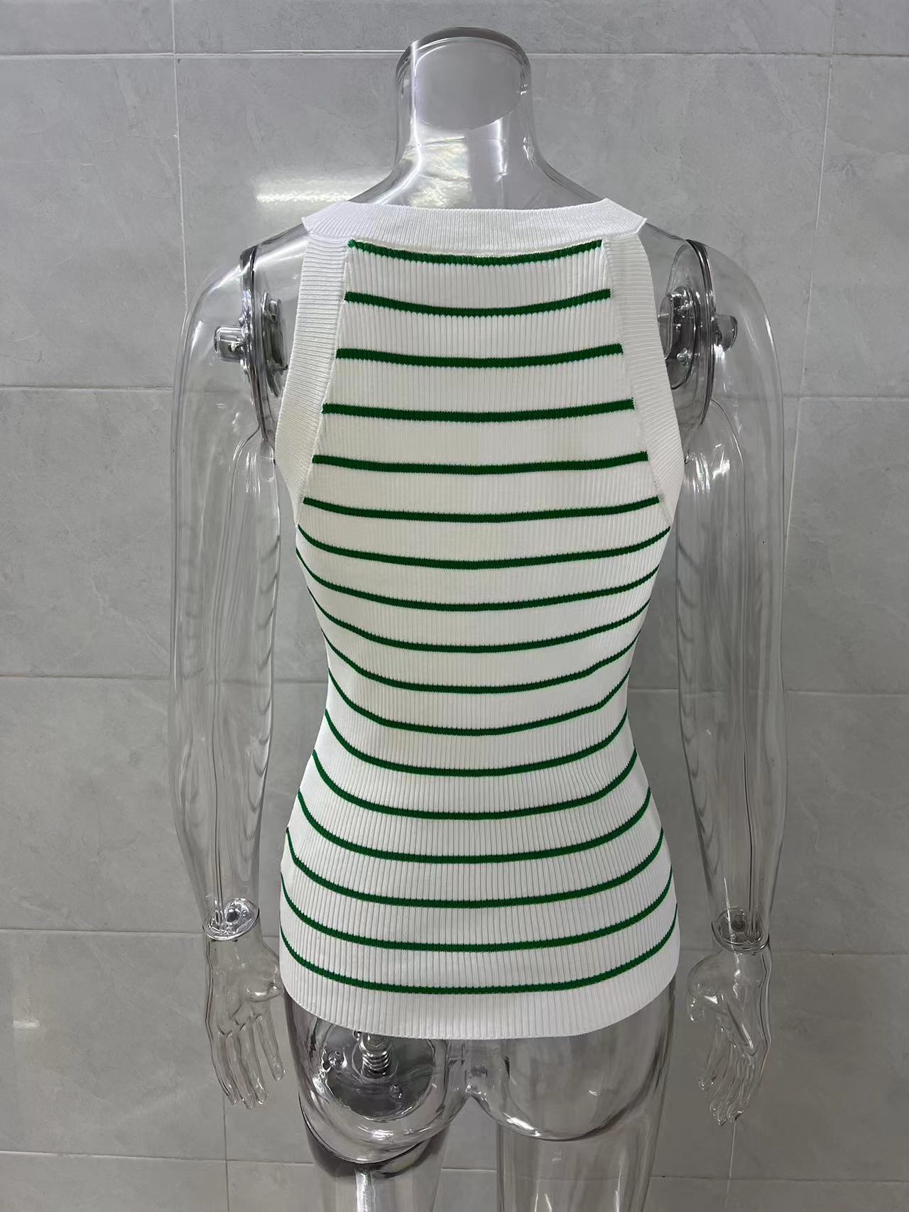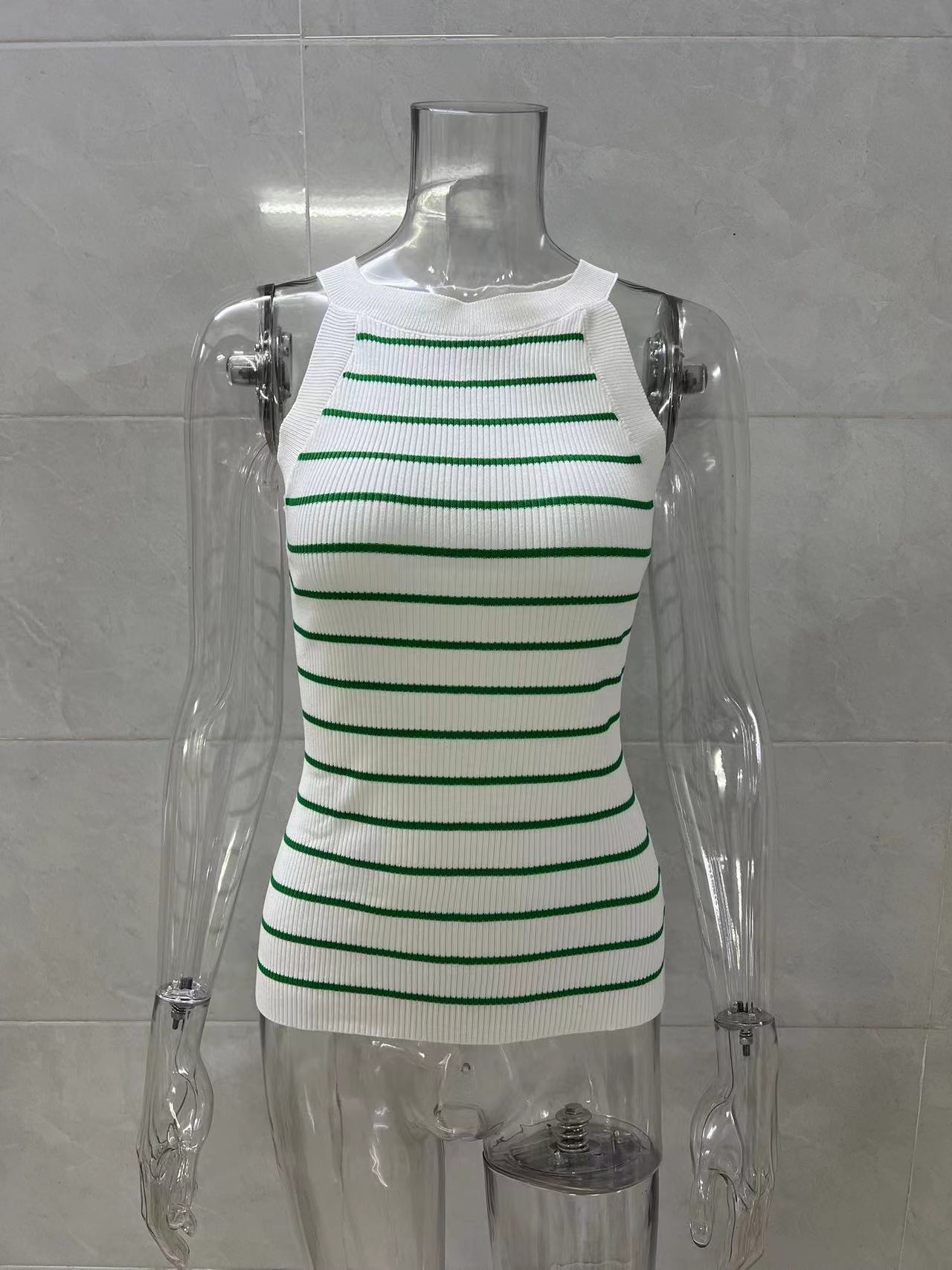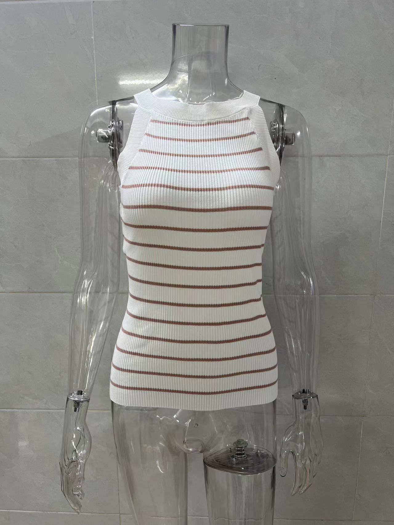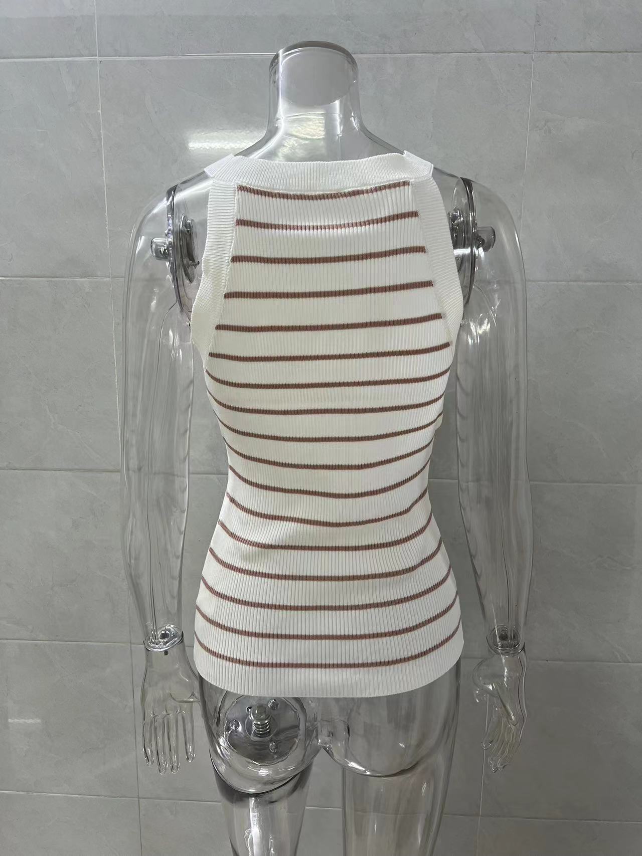 2026년 신상 유럽 및 미국 해외배송 아마존 핫걸 상의 섹시 민소매 스트라이프 이너웨어/아우터웨어 니트 조끼 여성용스토어 가기
