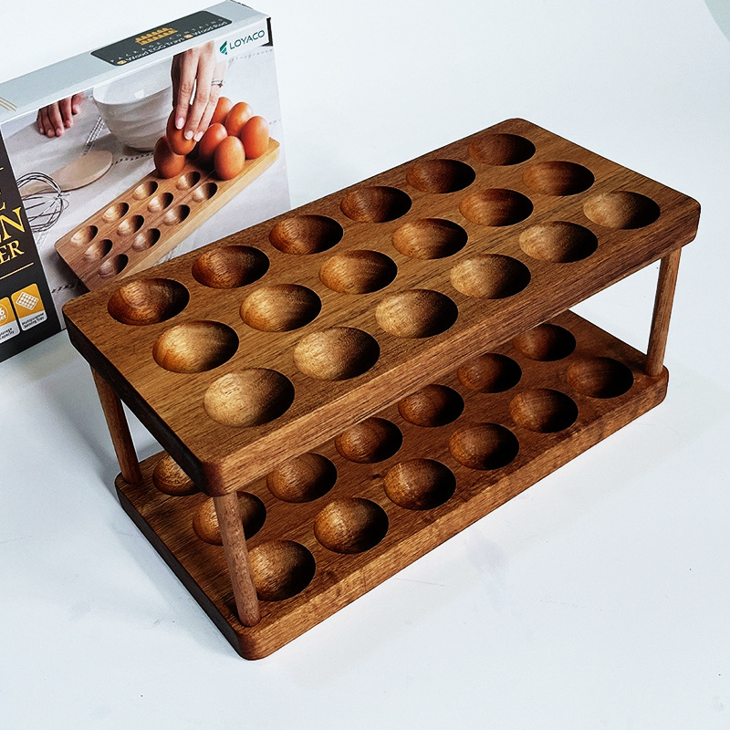 단단한 나무 계란 홀러 가정용 주방 저장 랙 계란 저장 랙 더블 레이어 저장 랙 주방 데스크탑 계란 홀러