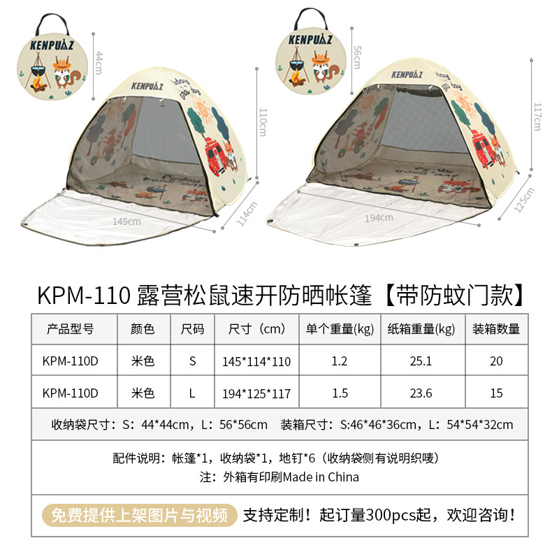 【产品名称/product】 露营松鼠速开防晒帐篷无门款