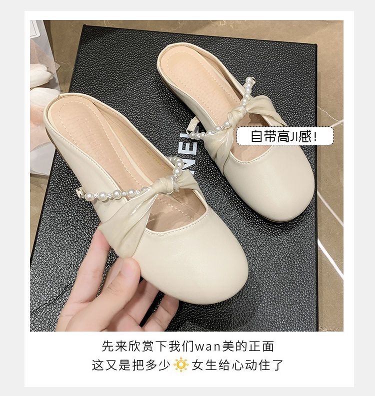 평평한 편안한 패션 다리 신발 여성의 2024 봄과 여름 새로운 사이버 연예인 요정 스타일 펄 바오투 드래그스토어 가기