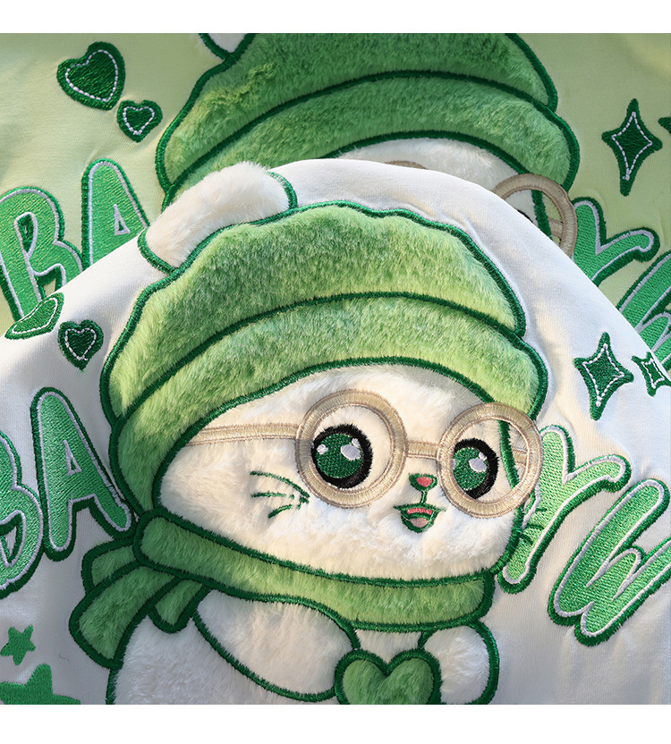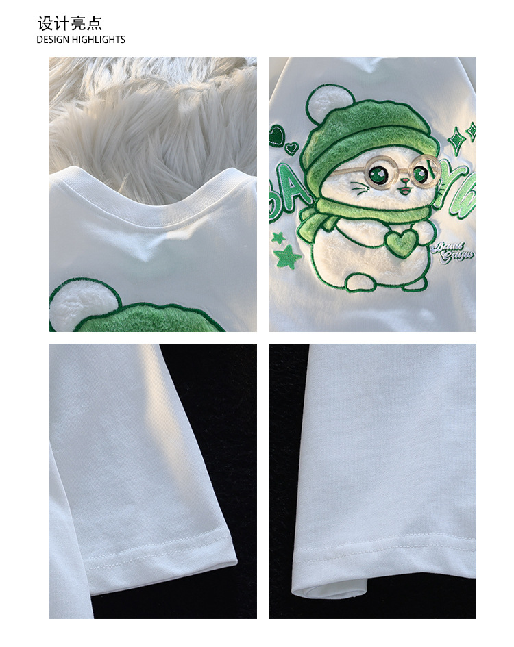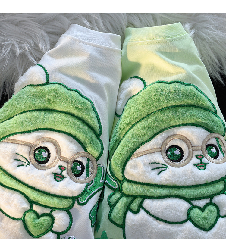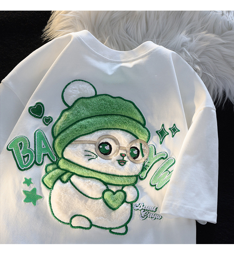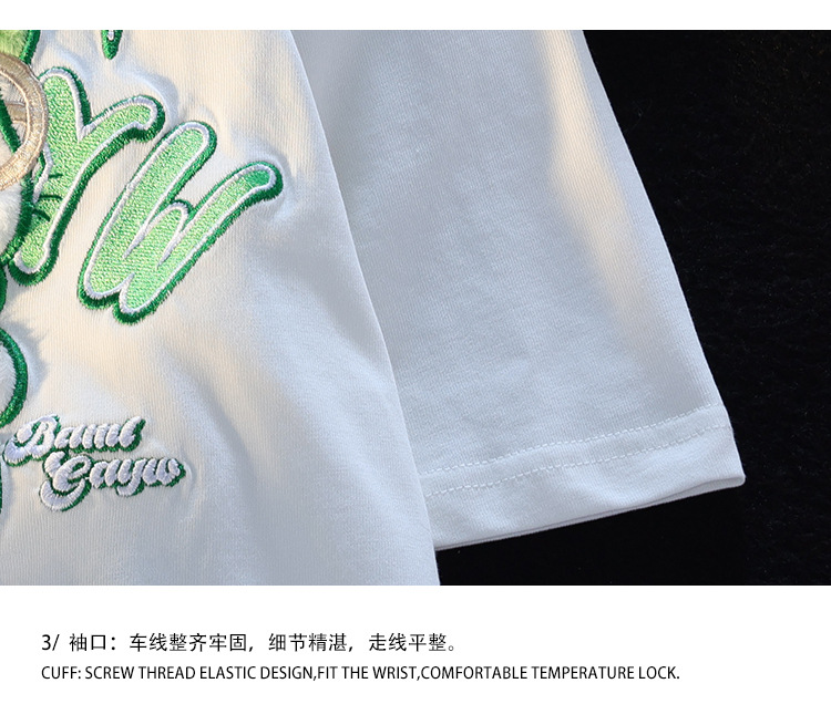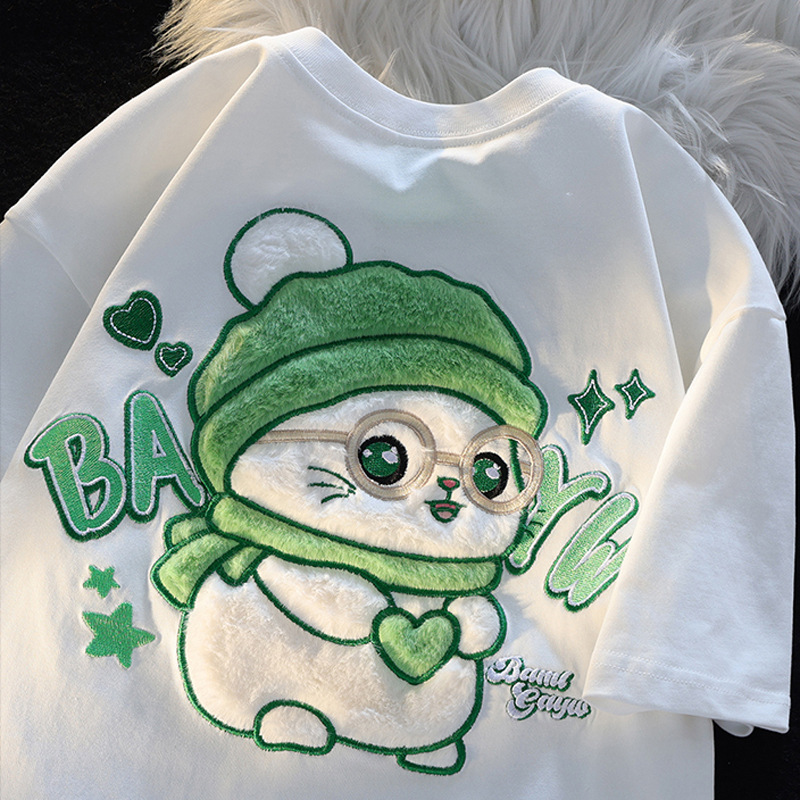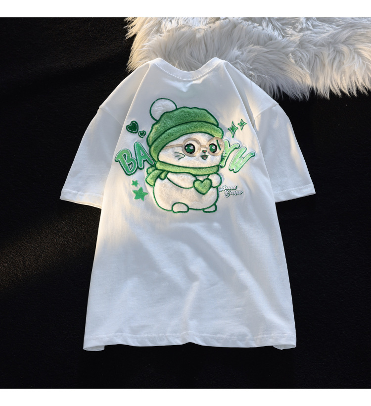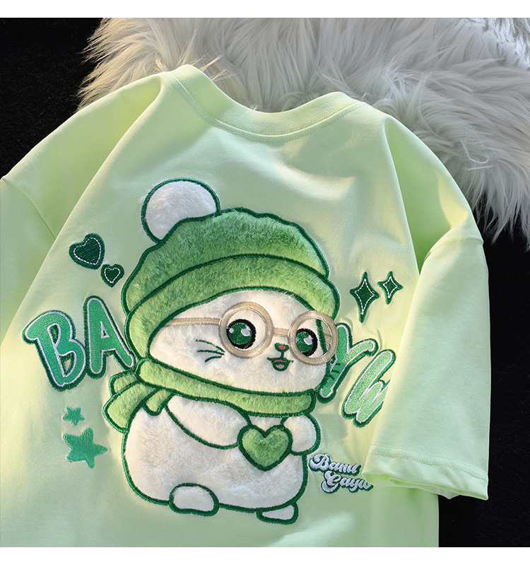 통통녀 mm 패션 브랜드 커플 반팔 티셔츠 느슨한 여성 여름 자수 새로운 틈새 달콤한 그린 코튼 탑