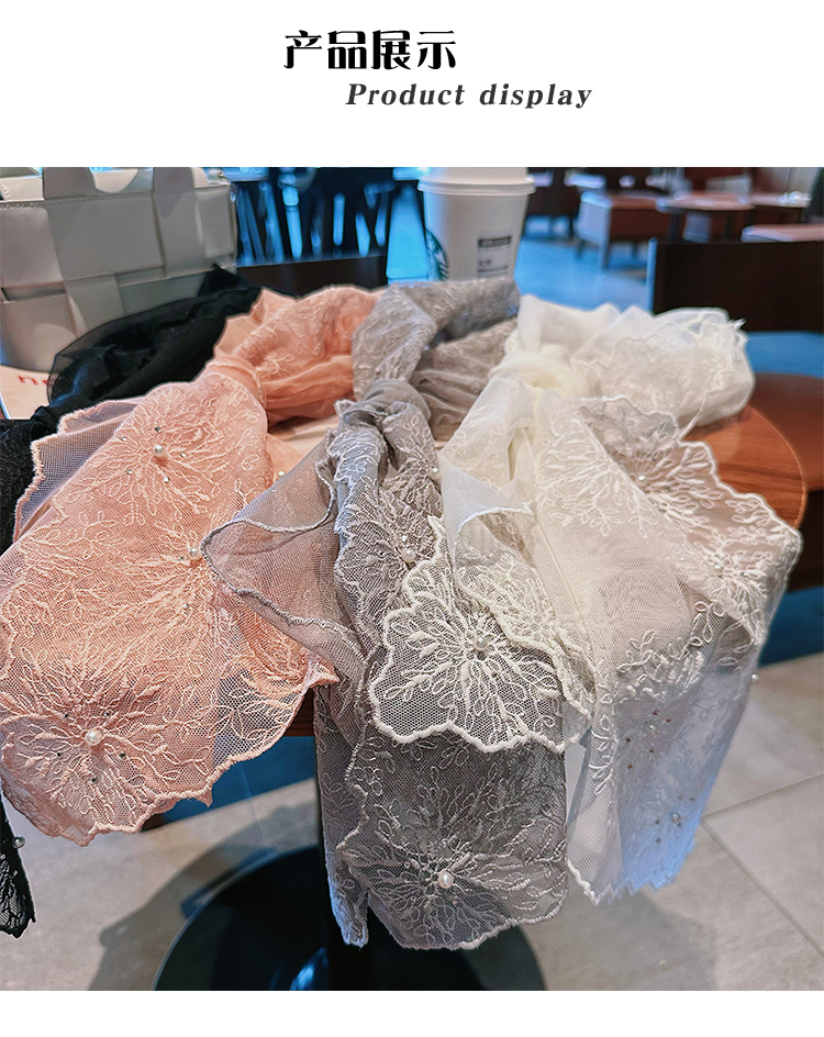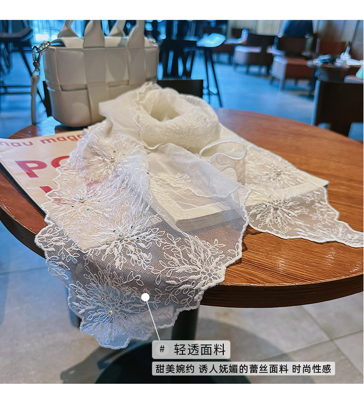 봄과 가을 새로운 한국 스타일 올 매치 레이스 거즈 다이아몬드 우아한 여성 스카프 통기성 메쉬 수 놓은 긴 스카프스토어 가기