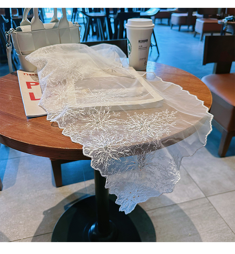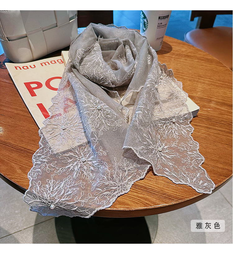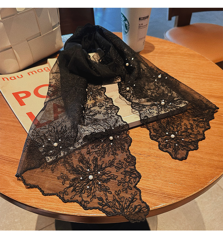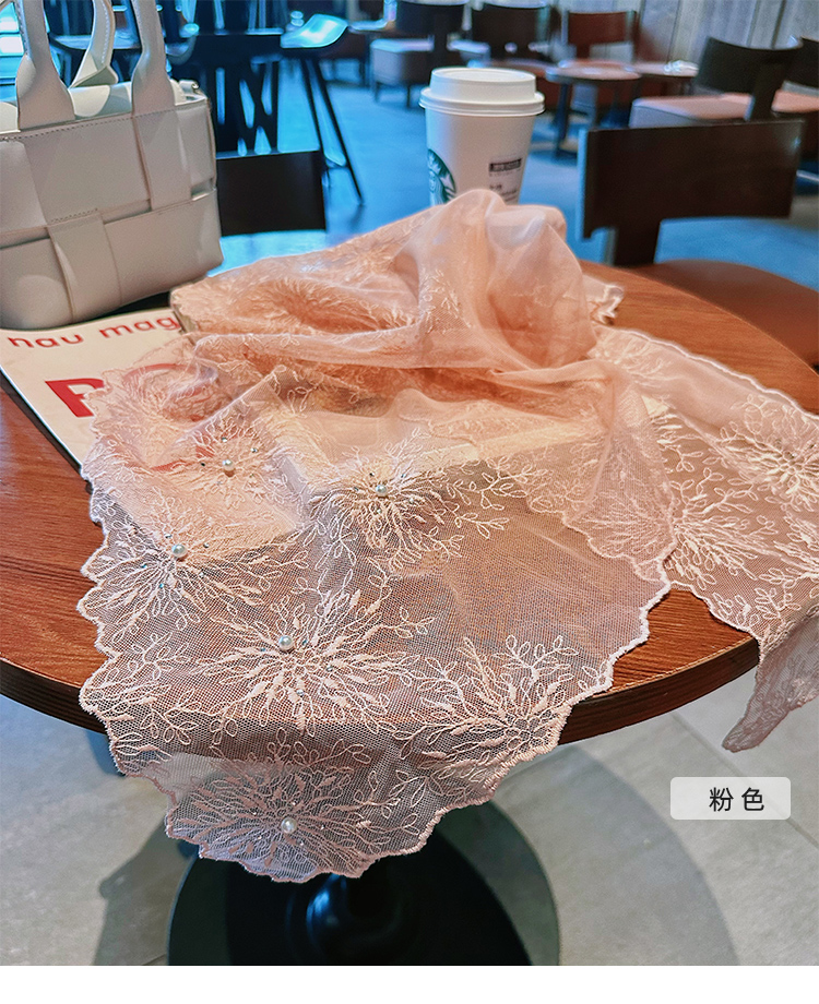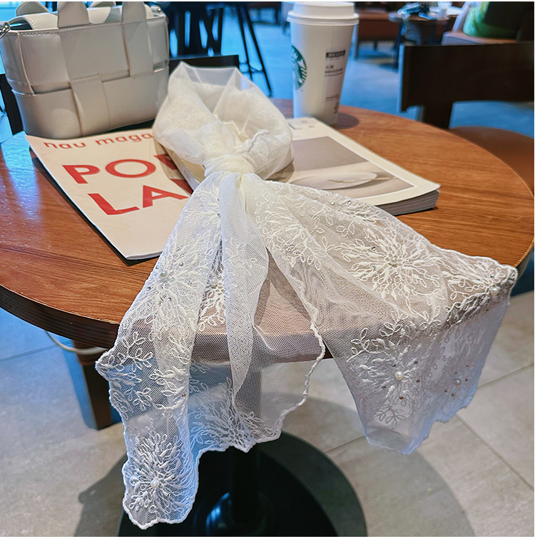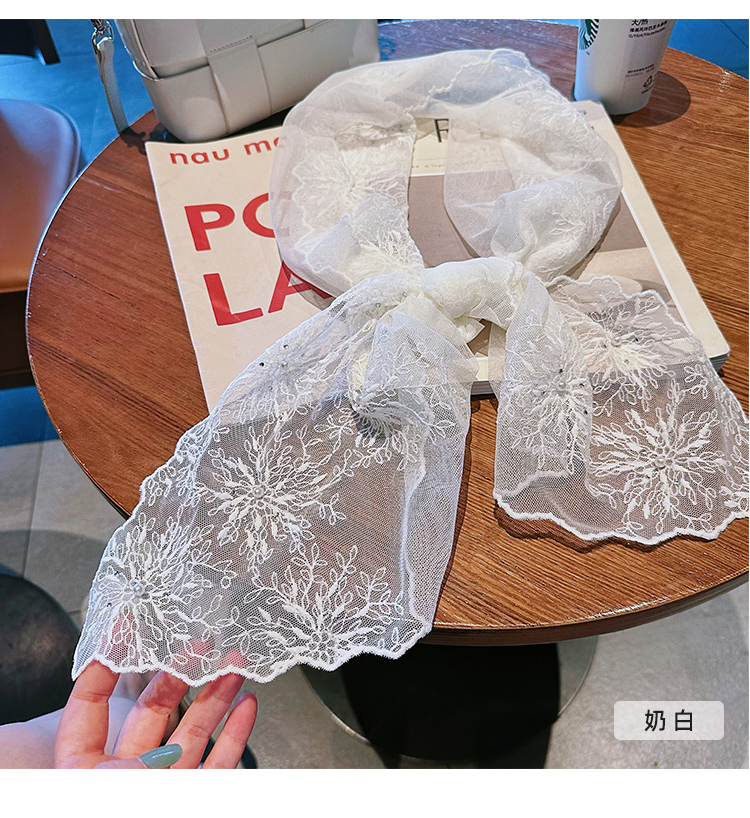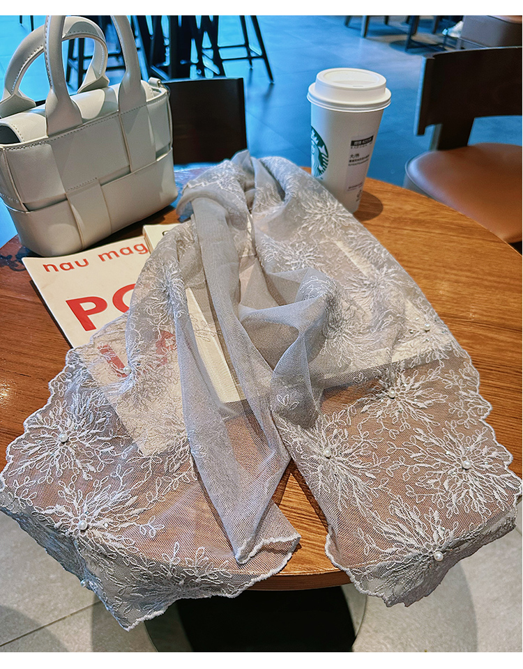 봄과 가을 새로운 한국 스타일 올 매치 레이스 거즈 다이아몬드 우아한 여성 스카프 통기성 메쉬 수 놓은 긴 스카프