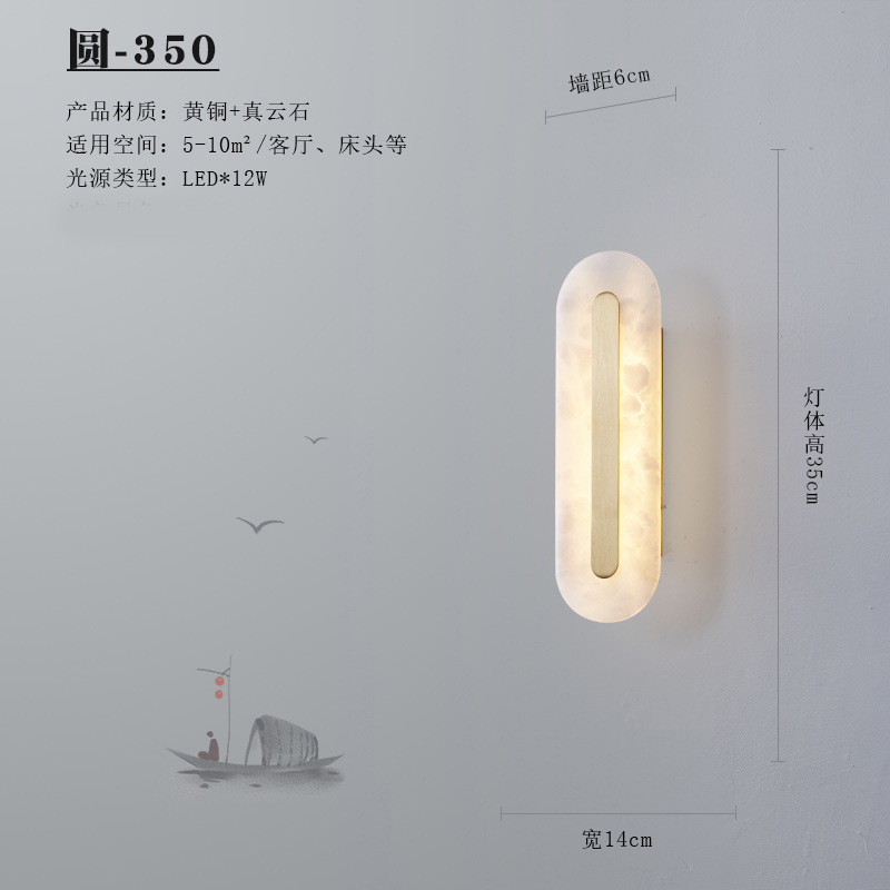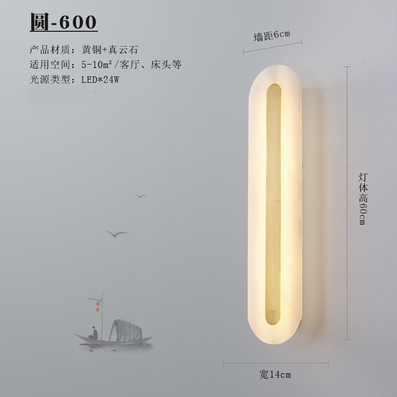 새로운 중국 스타일 빛 럭셔리 모든 구리 돌 거실 TV 배경 벽 램프 호텔 빌라 모델 침실 램프스토어 가기