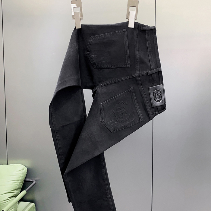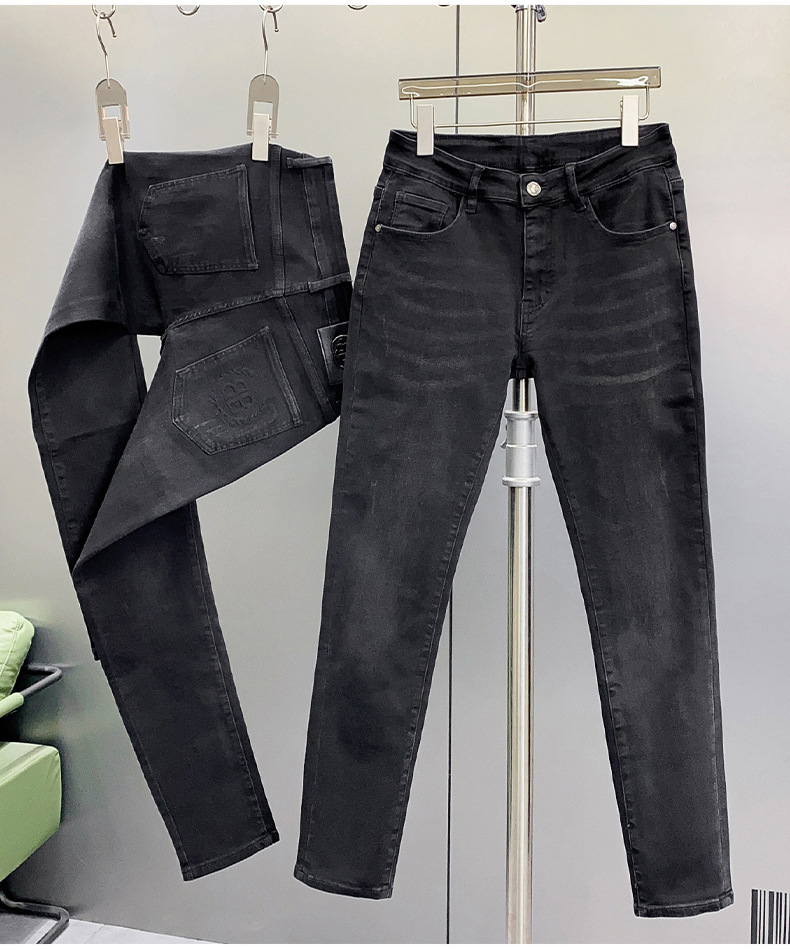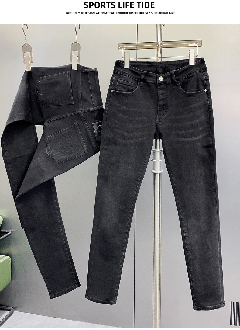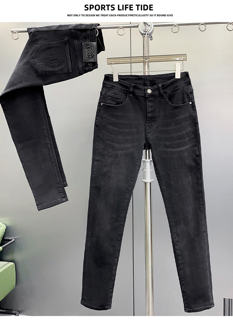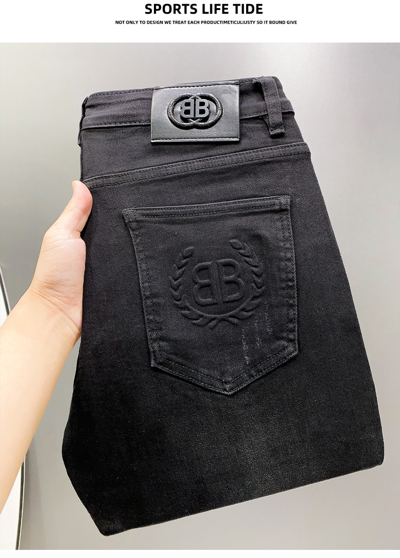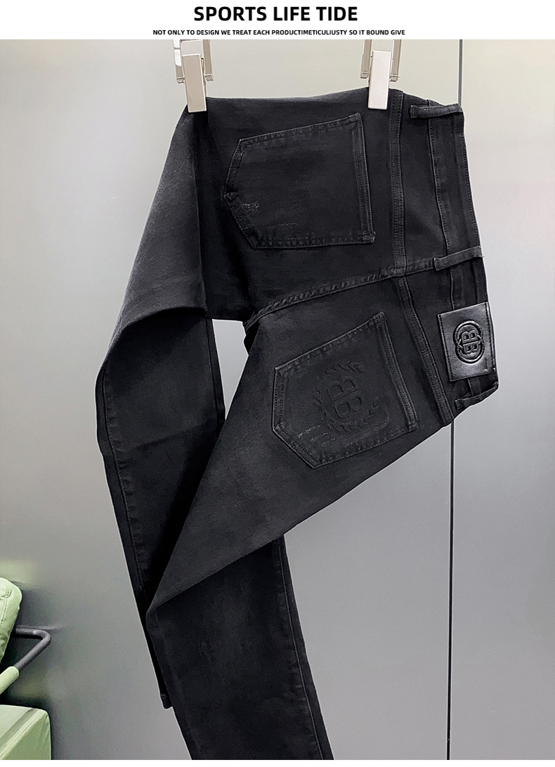 얇은 검은 청바지 남자 하이 엔드 청바지 남자 슬림 핏 스트레이트 팬츠 봄과 여름 캐주얼 올 매치 바지 남자스토어 가기