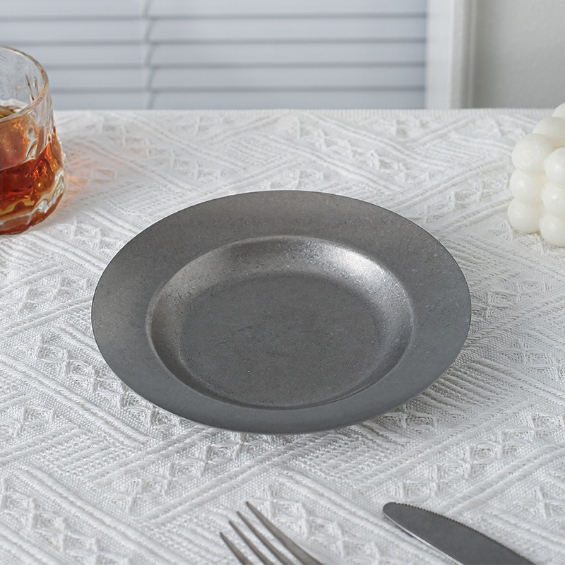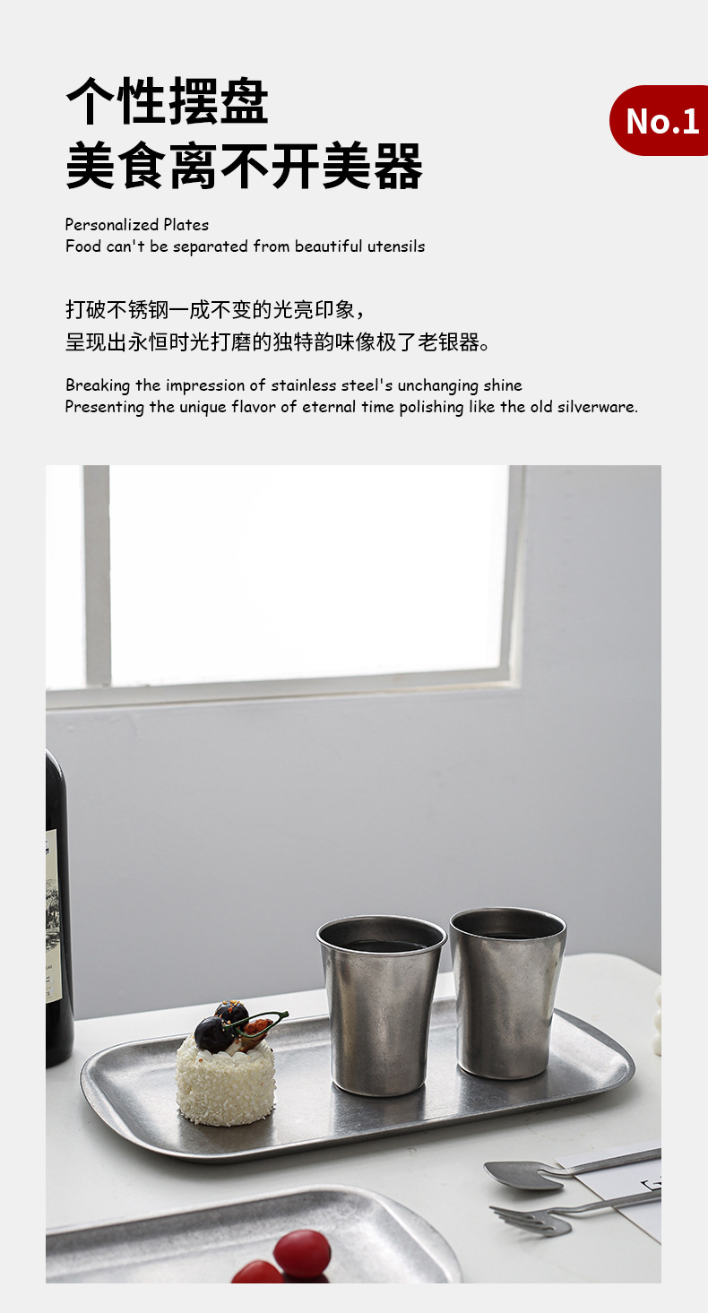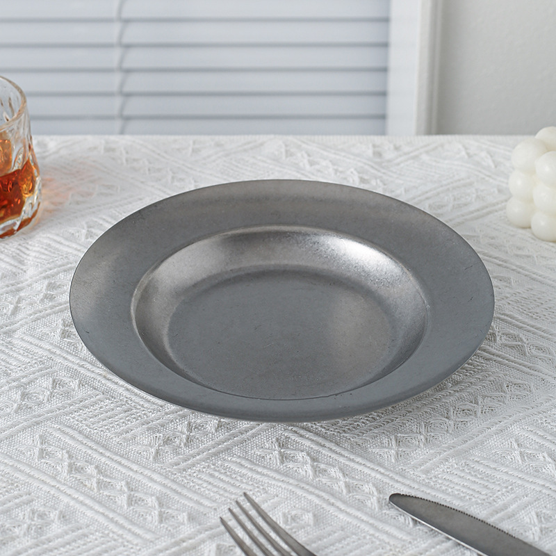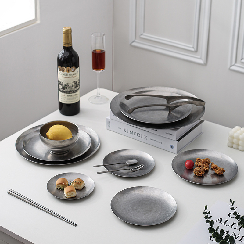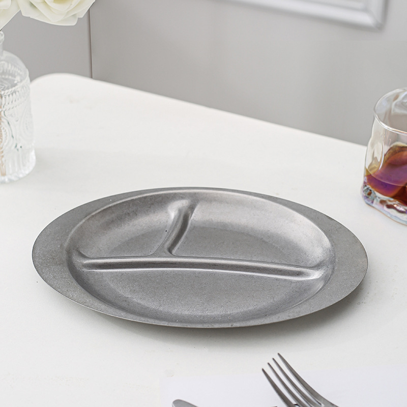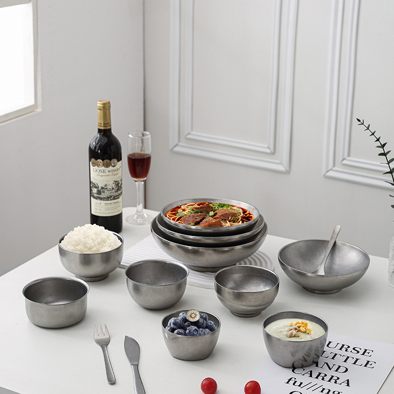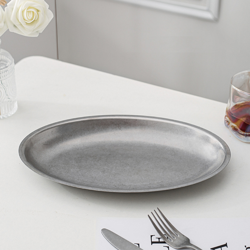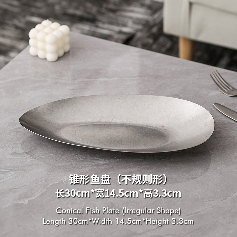 304 스테인레스 스틸 오래된 원형 식기 접시 수프 그릇 얕은 접시 뼈 접시 타원형 접시 더블 레이어 그릇 일본라면 그릇