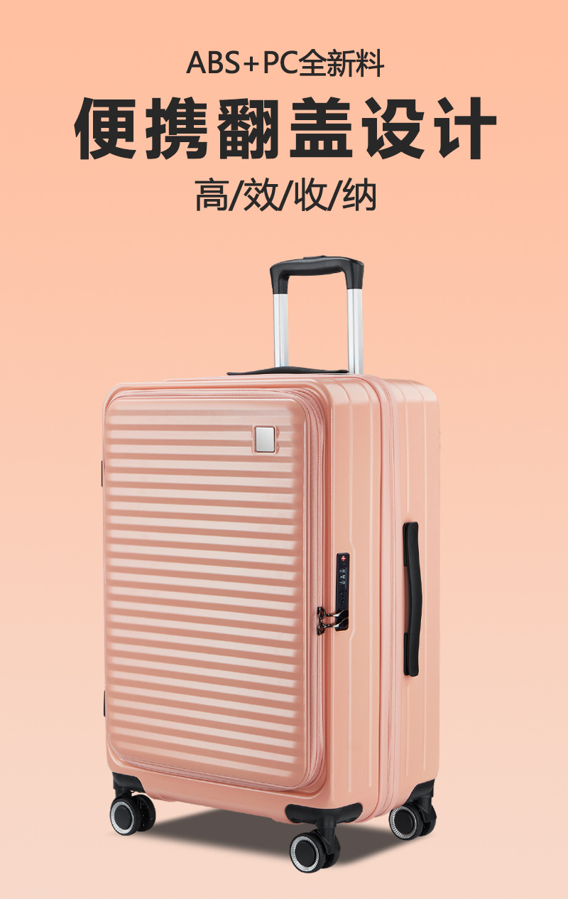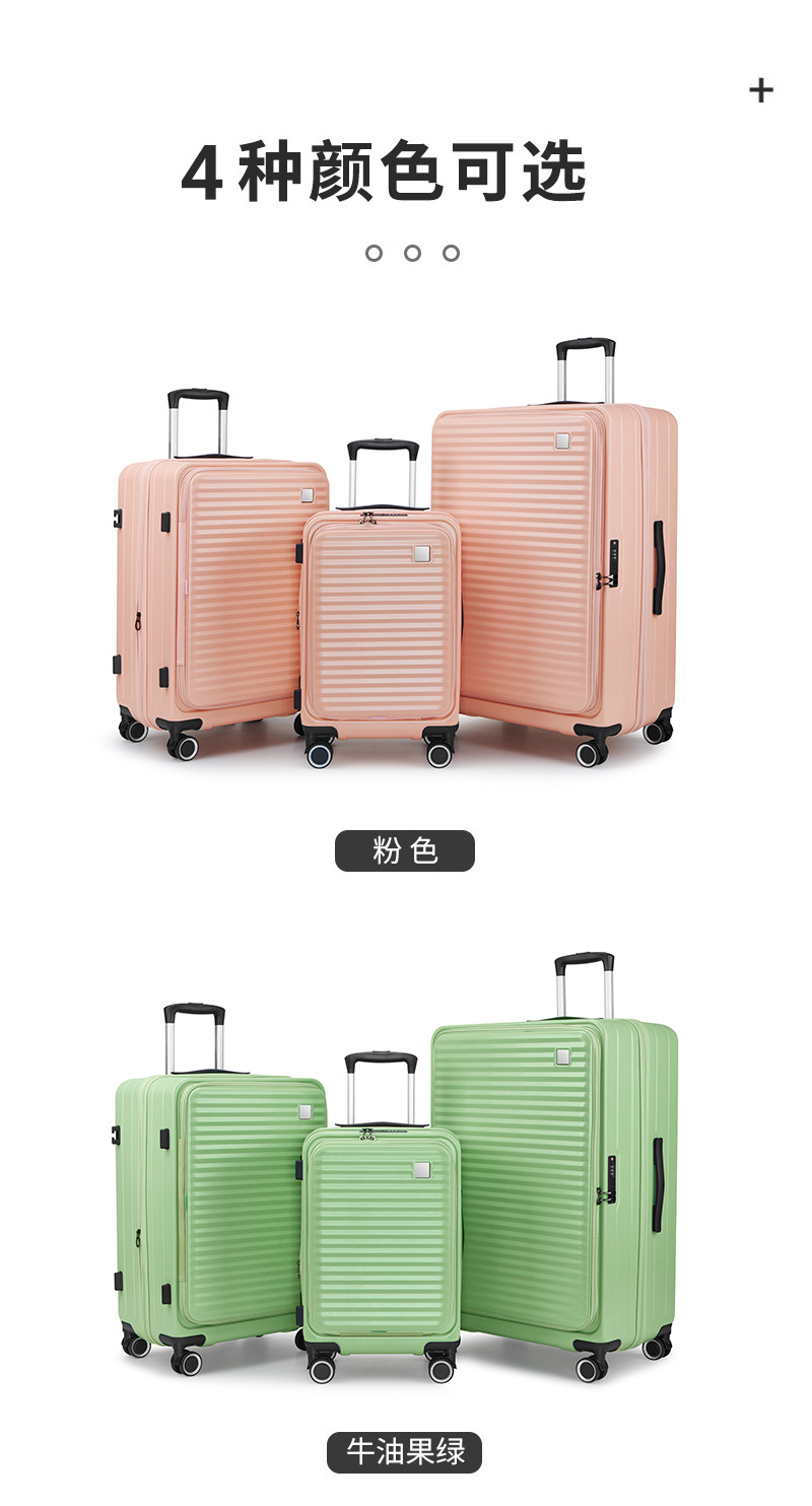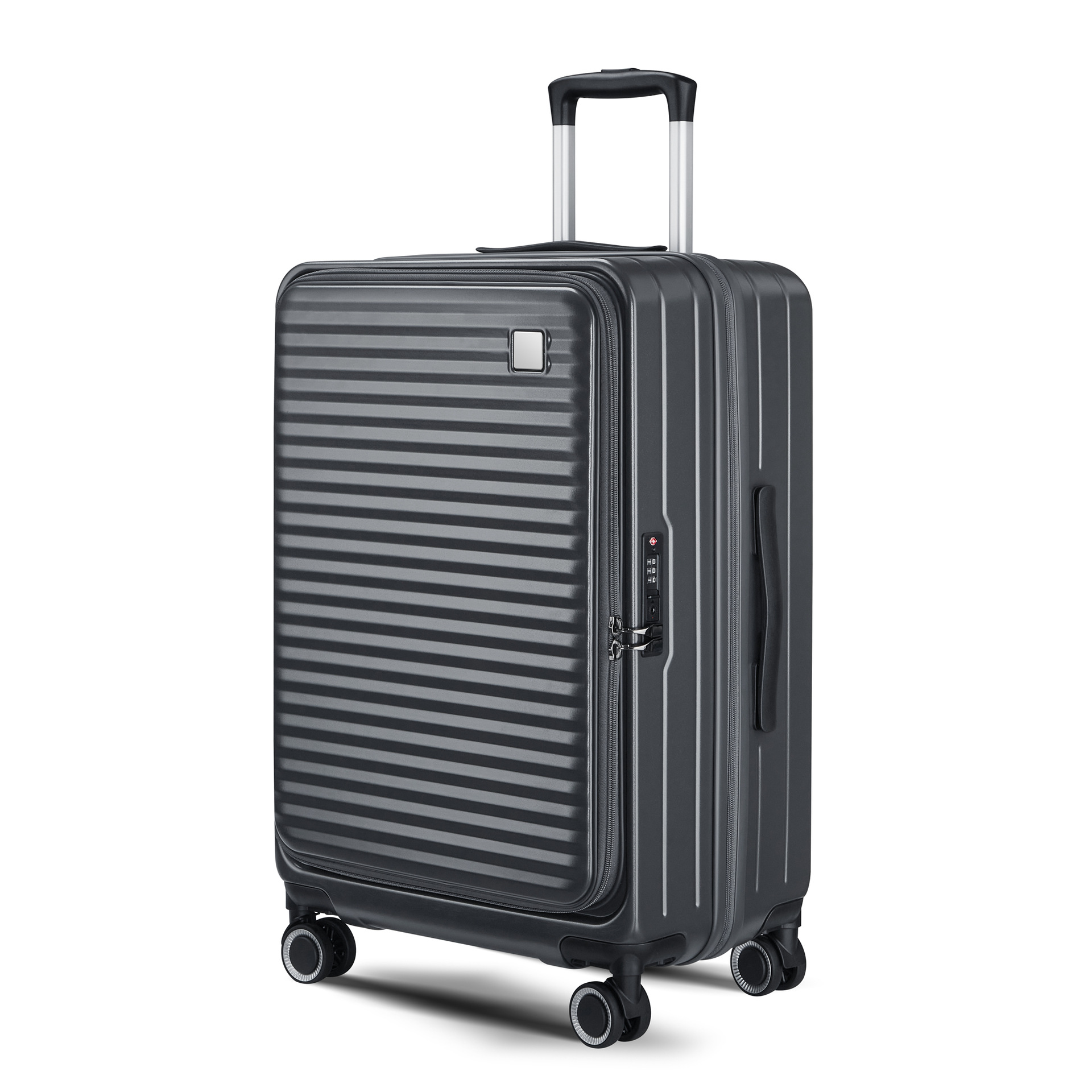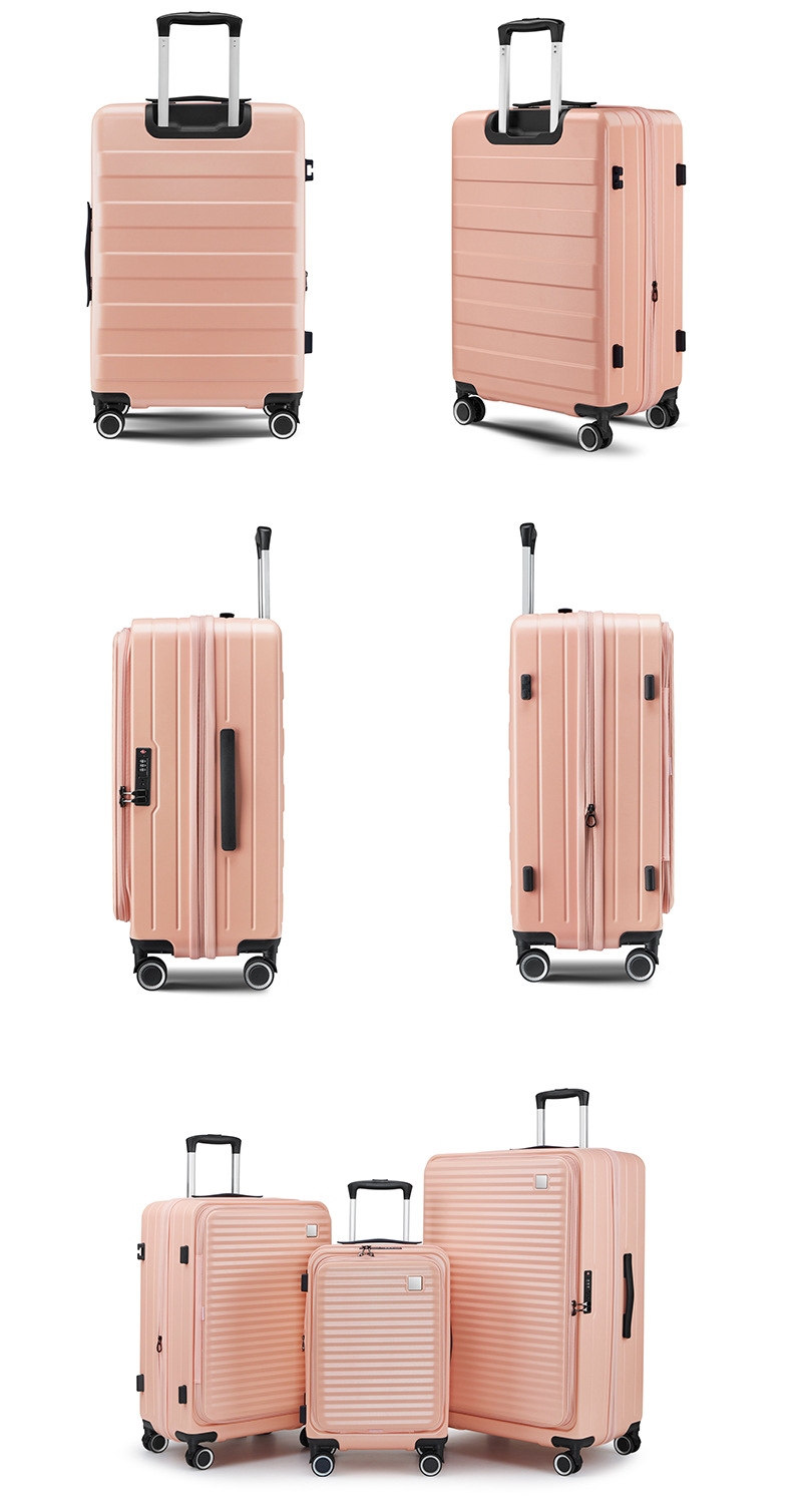3 피스 전면 오픈 뚜껑 수하물 케이스 ABS PC 신소재 사이드 오프닝 가방 사용자 정의 로고 지퍼 트롤리 케이스