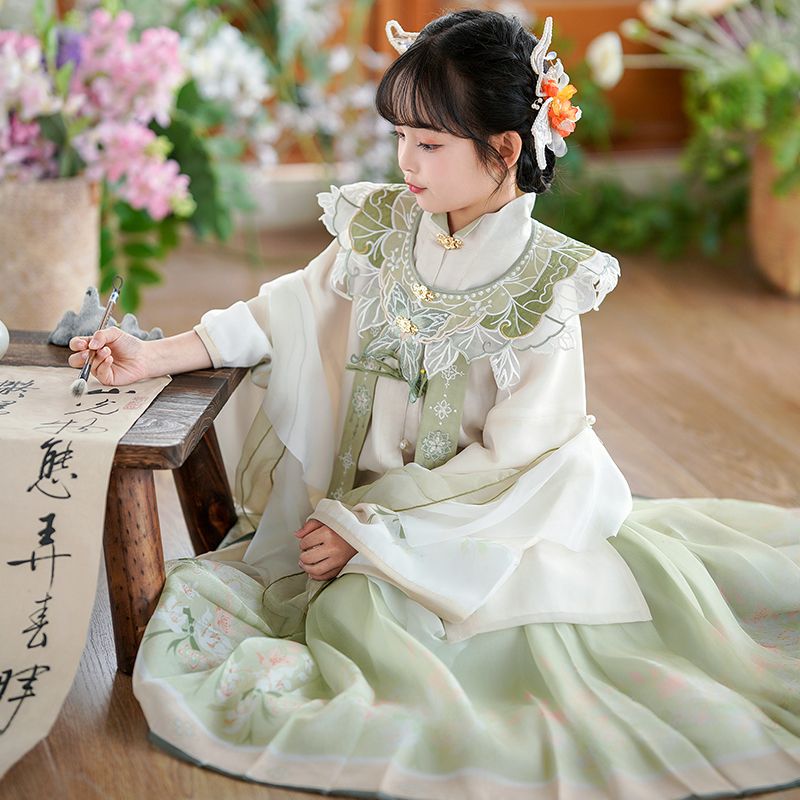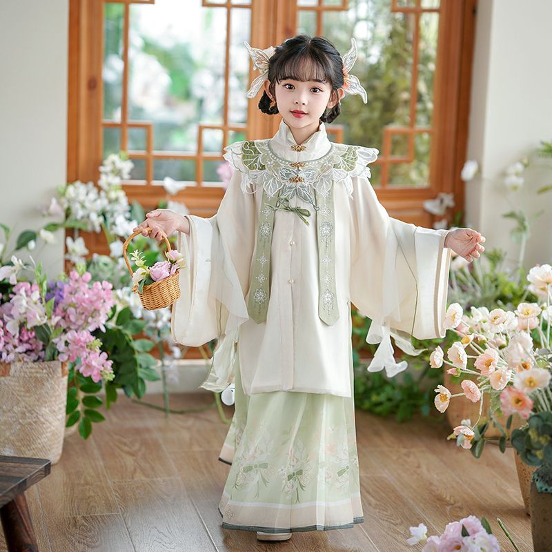 한푸 소녀의 봄과 여름 새로운 어린이 슈퍼 불멸의 고대 스타일 고대 스타일 중국 스타일 봄 당나라 세트 여성 보물 꽃 신 여름 세트