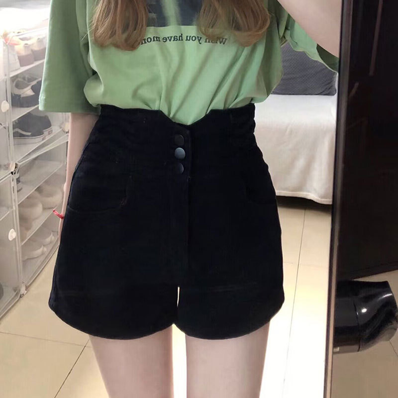 데님 반바지 여성의 새로운 V 자형 슈퍼 하이 허리 디자인 버클 블랙 인 스타일 핫 걸스 슬림 핏 스트레이트 핫 팬츠 여름스토어 가기
