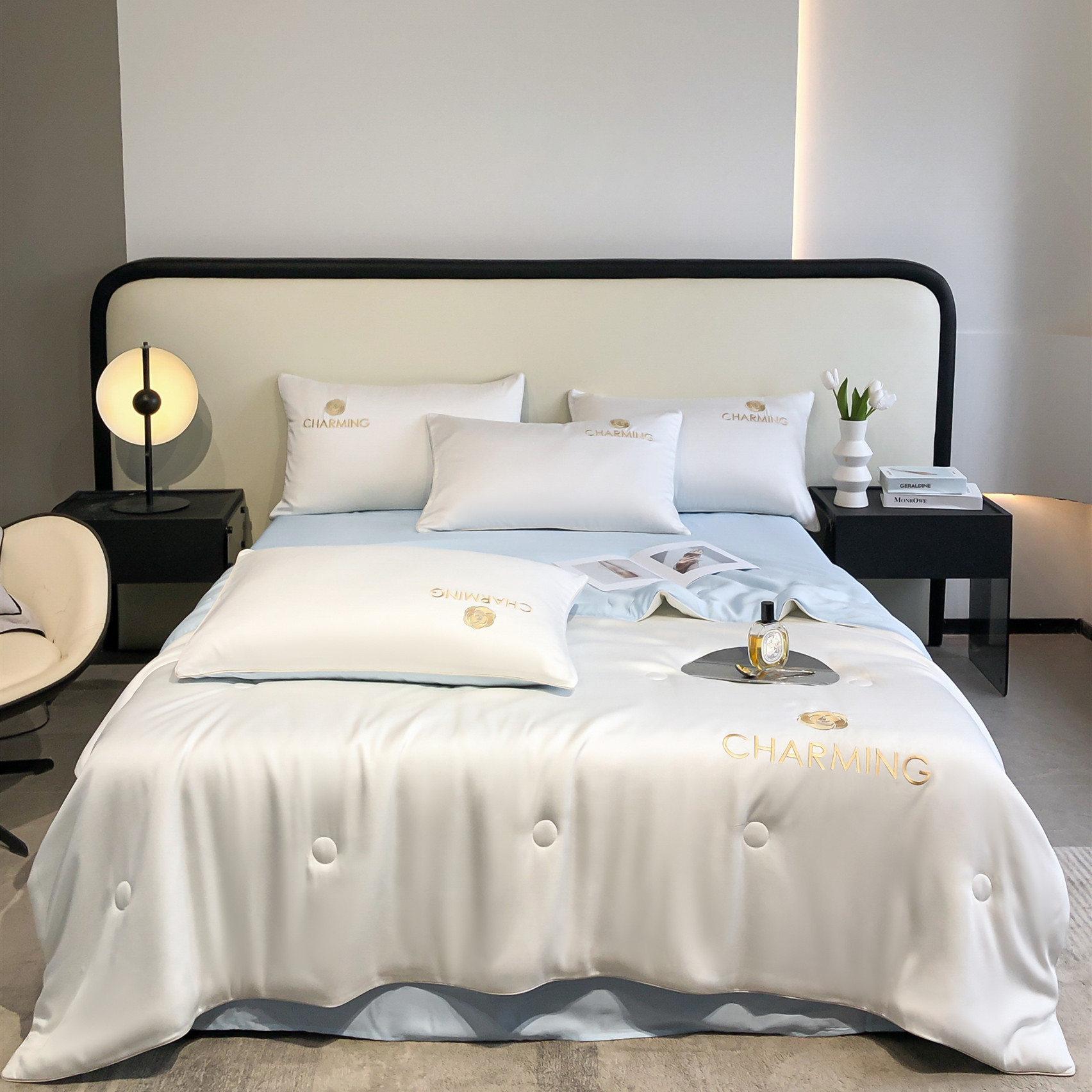 새로운 여름 쿨 퀼트 에어컨 퀼트 세척 실크 여름 퀼트 4 피스 세트 실키 고급 싱글 더블 얇은 퀼트스토어 가기