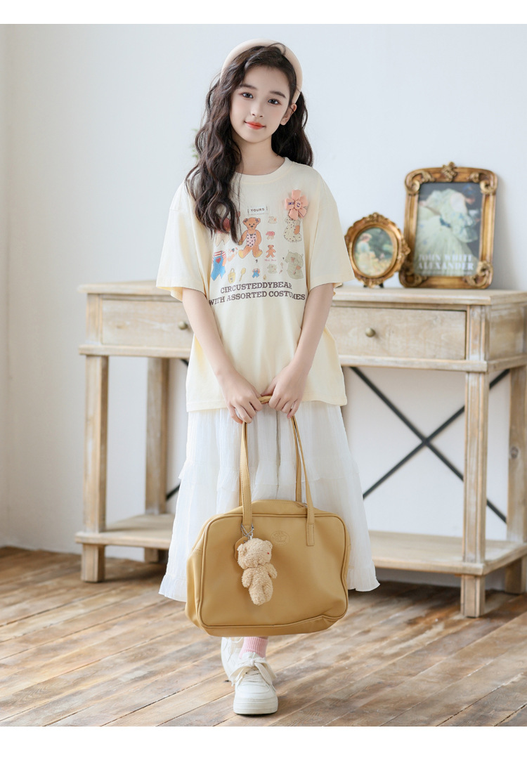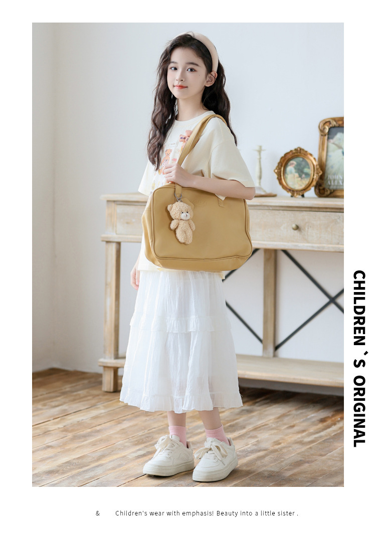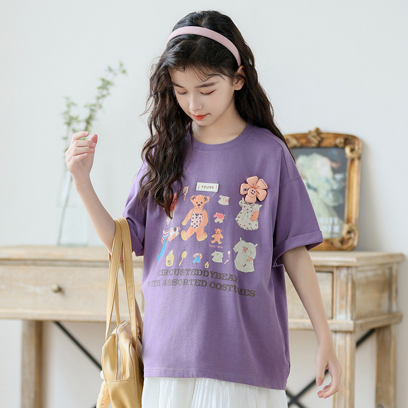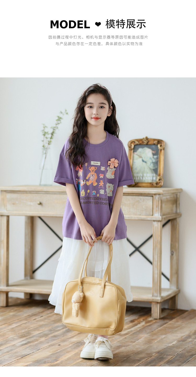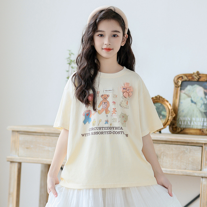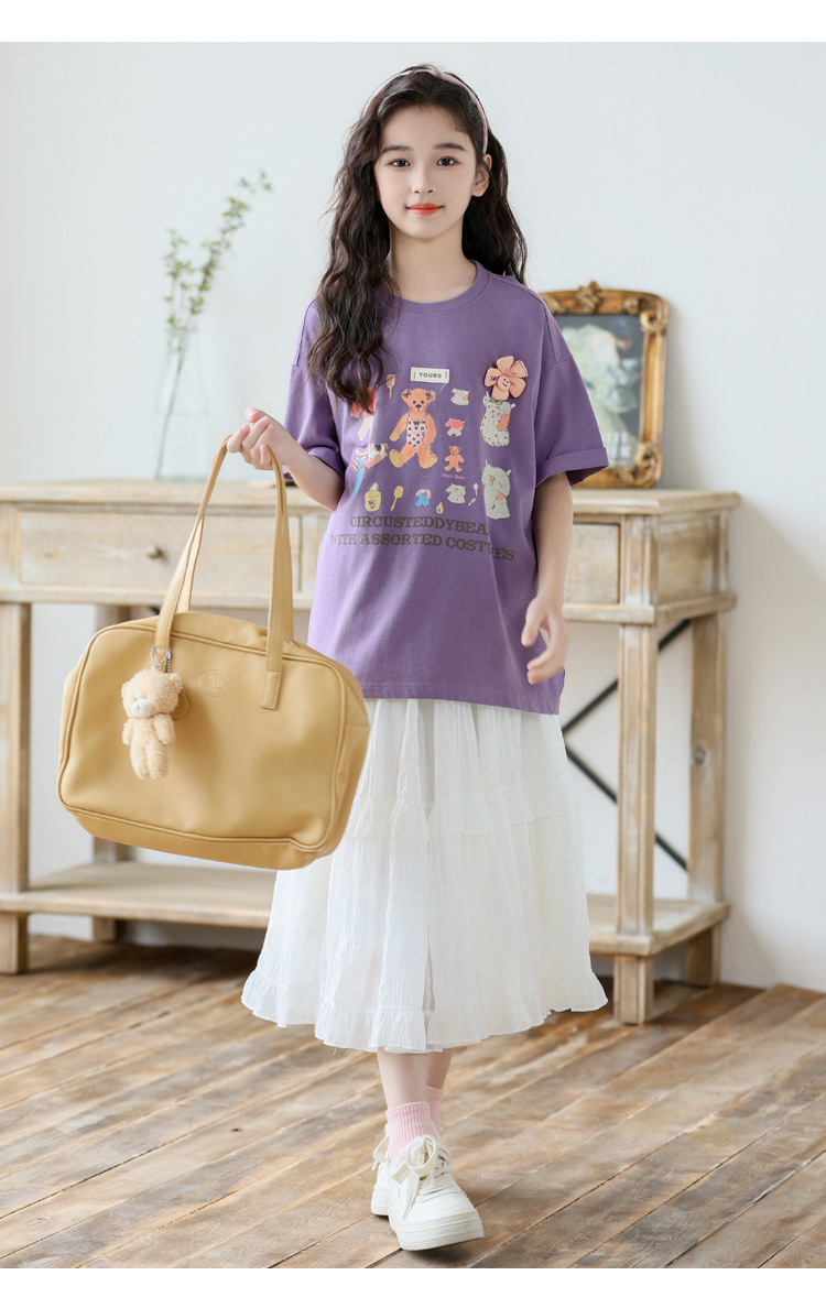 어린이 및 소녀 스커트 여름 세트 2024 새로운 한국 스타일 어린이 프린트 티셔츠 투피스 세트