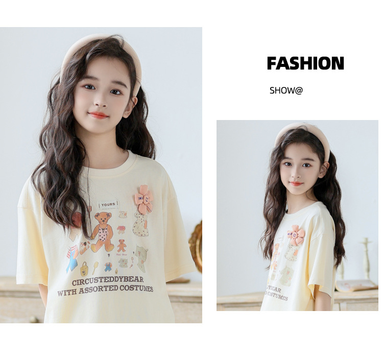 어린이 및 소녀 스커트 여름 세트 2024 새로운 한국 스타일 어린이 프린트 티셔츠 투피스 세트스토어 가기