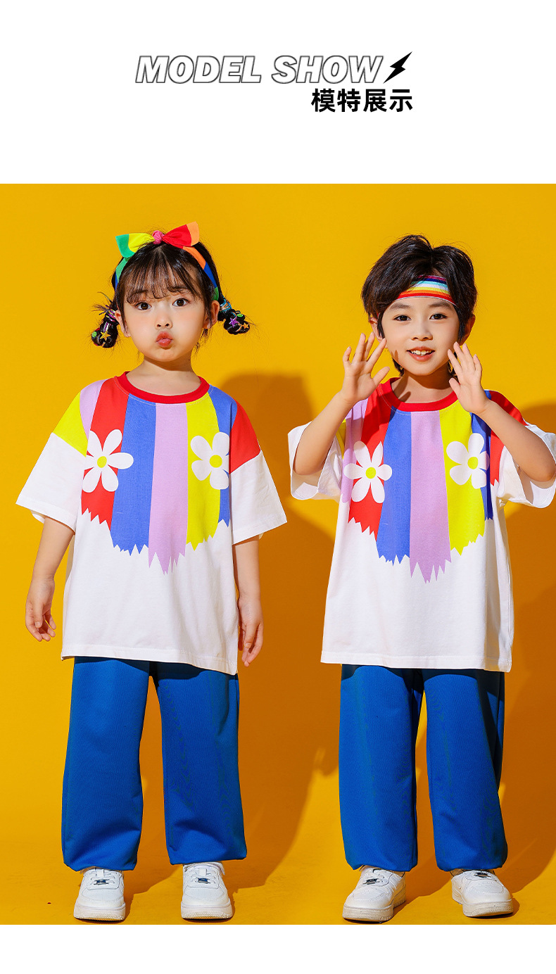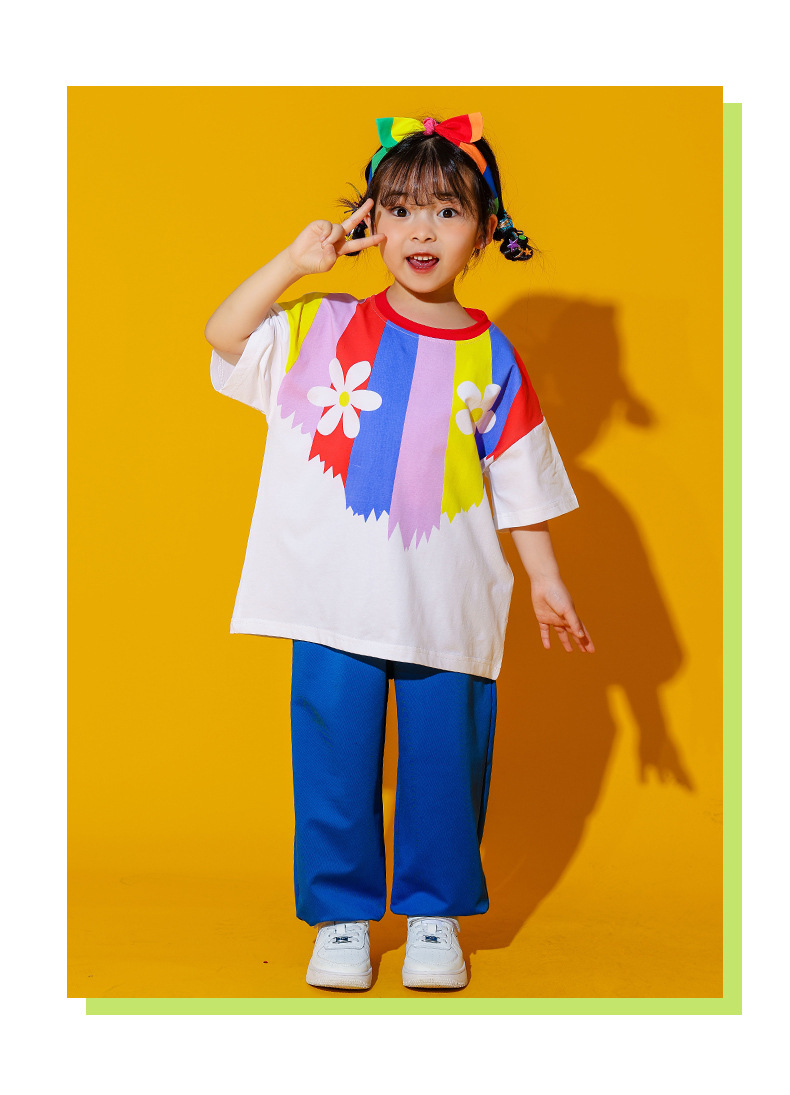 • 세트 [569D 꽃 짧은 소매 542D 블루 바지] 무지개 헤어 밴드