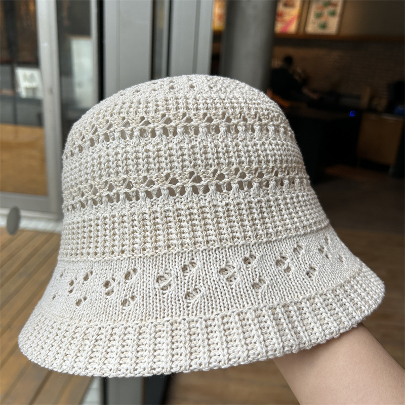 일본식 중공 어부 모자 여성의 봄과 여름 얇은 통기성 태양 보호 그늘 모자 한국식 올매치 얼굴 작은 양동이 모자를 보여줍니다