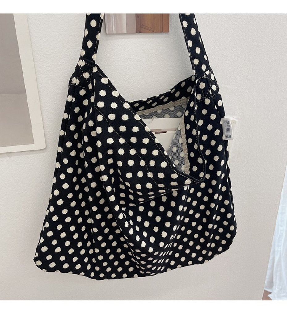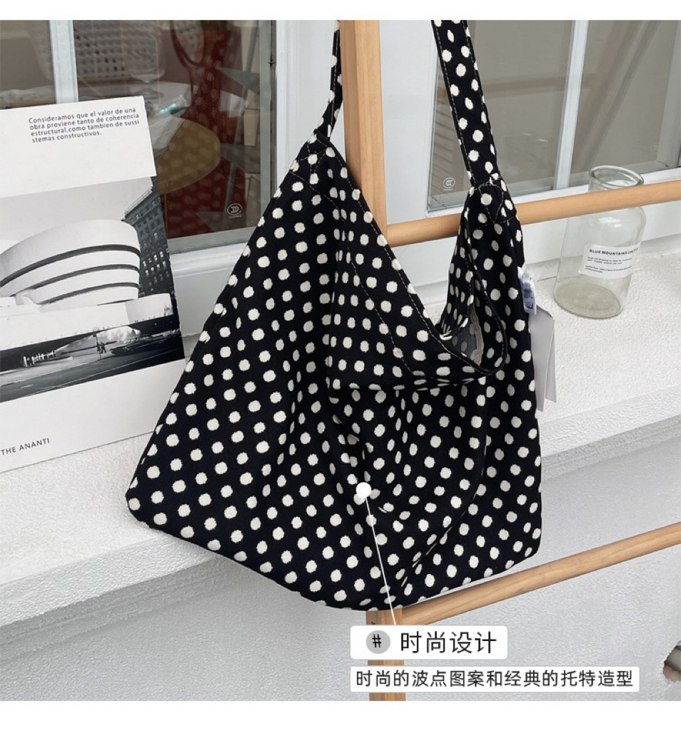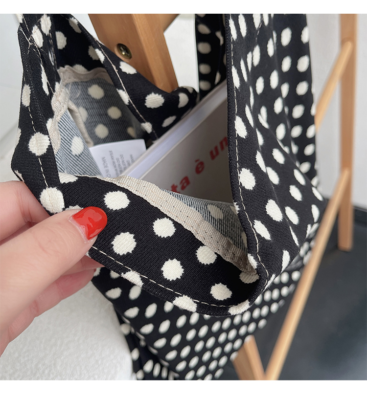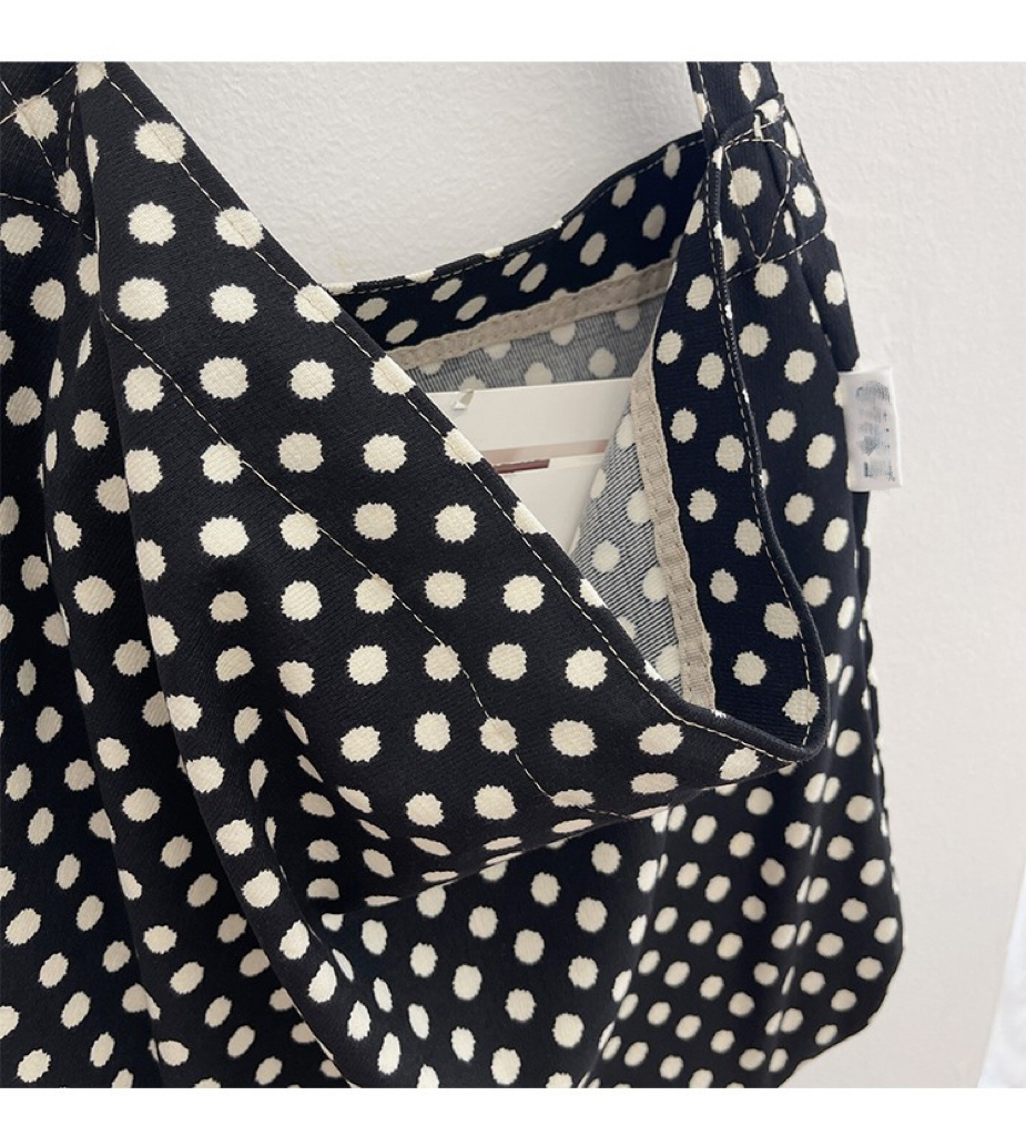 한국 헵번 스타일 클래식 흑백 웨이브 도트 헝겊 가방 신선한 어깨 대용량 핸드백 캐주얼 쇼핑백스토어 가기