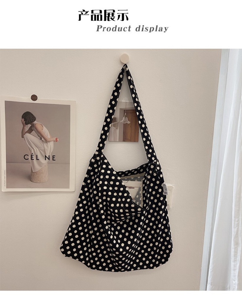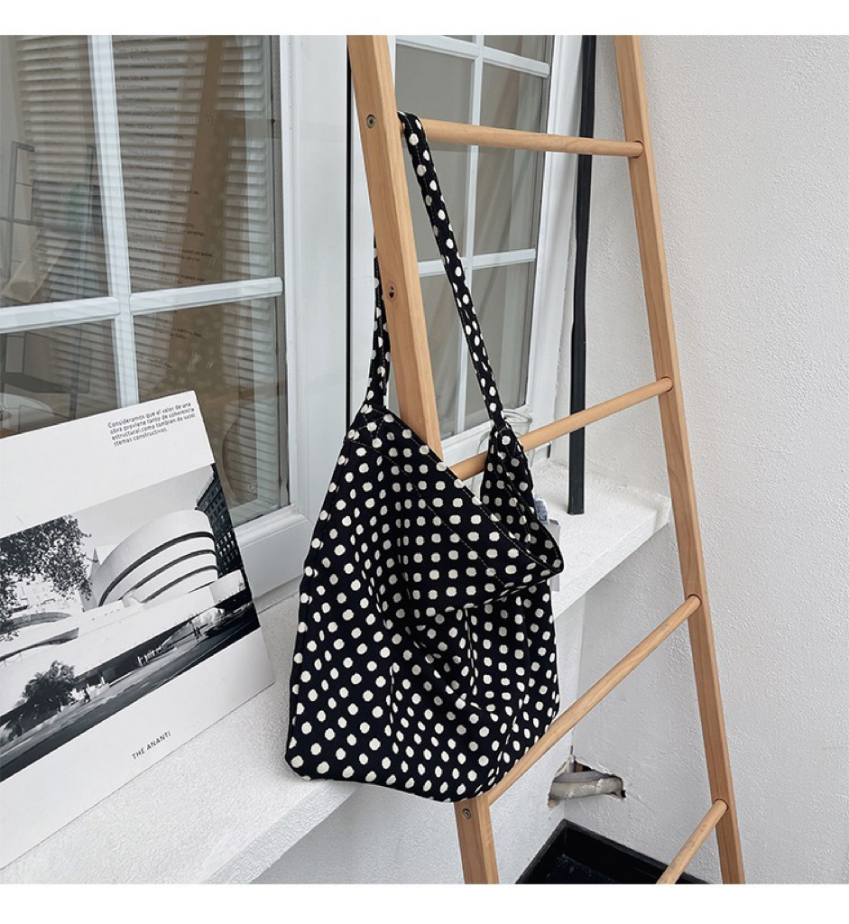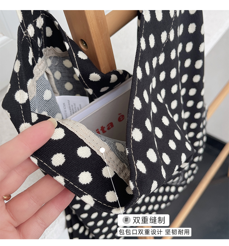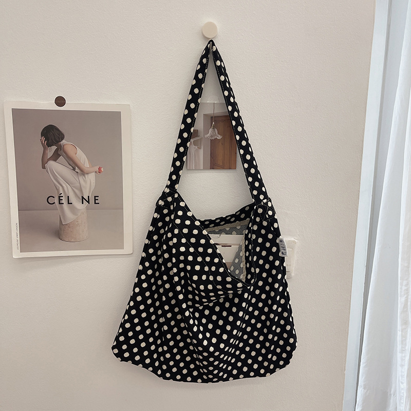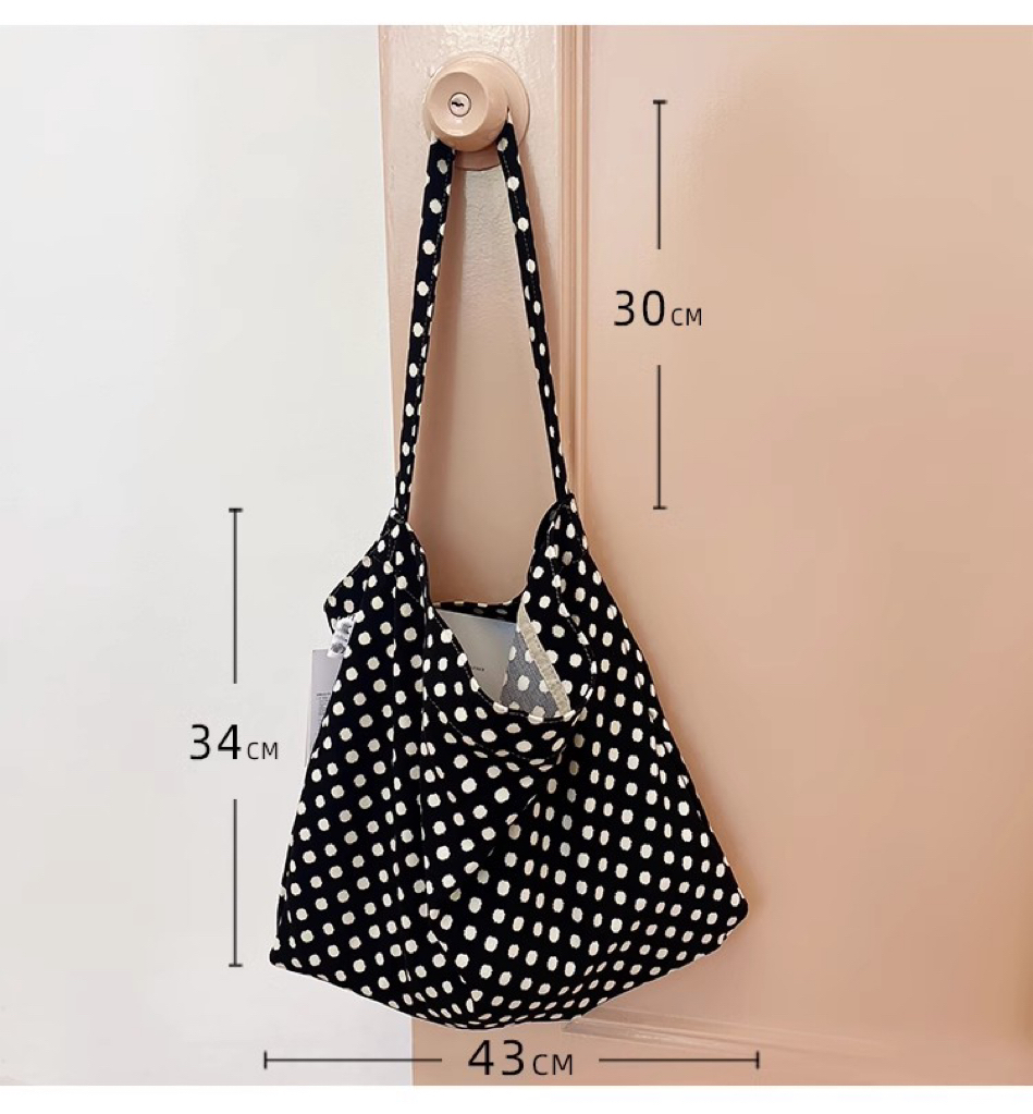 한국 헵번 스타일 클래식 흑백 웨이브 도트 헝겊 가방 신선한 어깨 대용량 핸드백 캐주얼 쇼핑백스토어 가기
