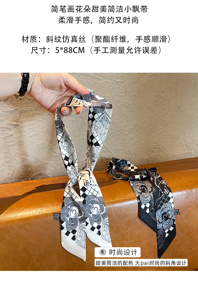 포장 가방 리본 얇은 좁은 스카프 헤어 밴드 넥타이 헤어 동백 흑백 올 매치 타이 백 작은 리본